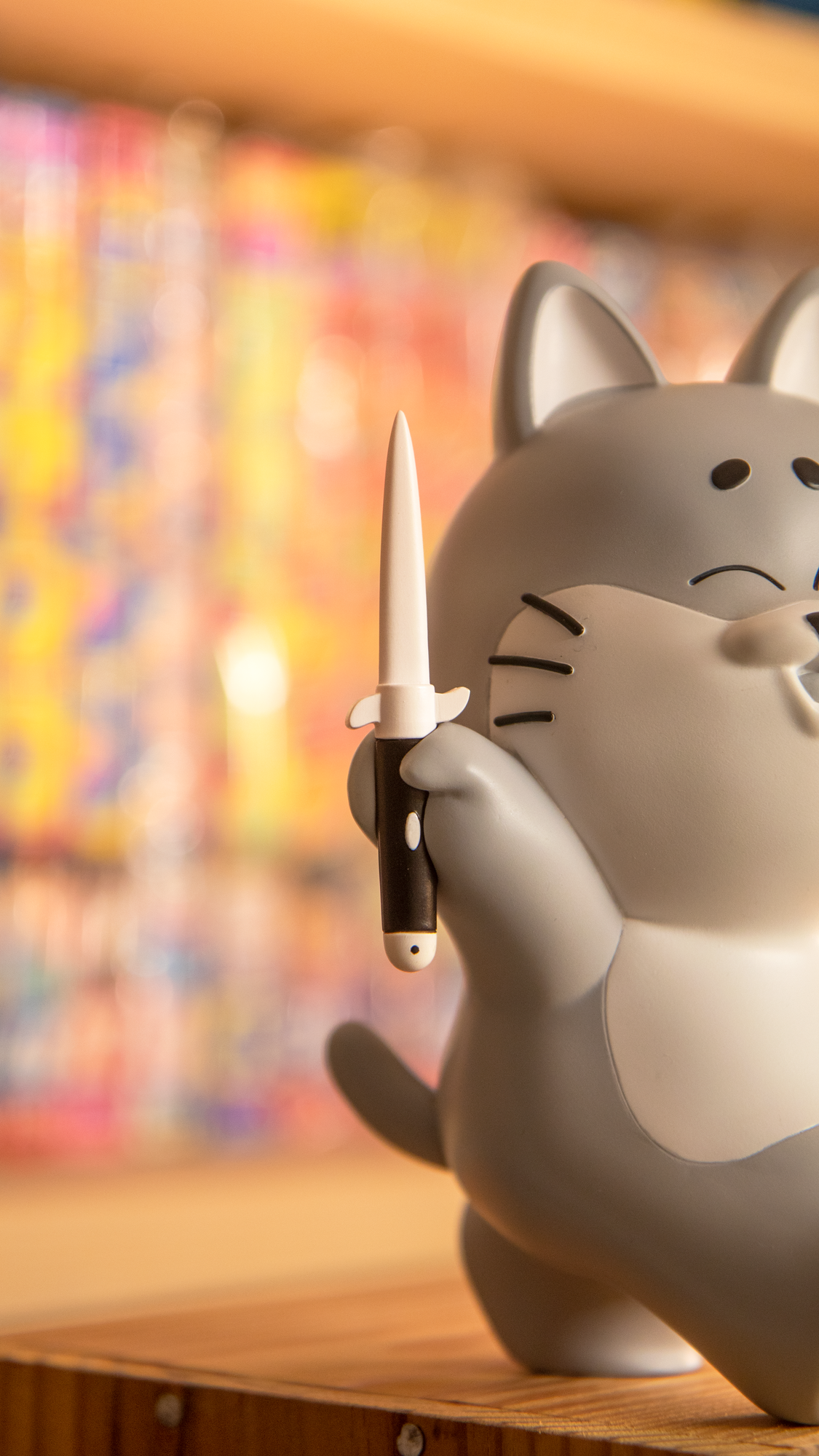 Initially largely inspired by 1980s Japanese culture, Debza has since developed a style entirely his own. Always curious to explore new mediums, it is his iconic cat—seemingly cheerful yet always carrying its stiletto—that serves as a new field of experimentation. With this project, MAGMA brings a new dimension to Debza’s iconic character while faithfully respecting the spirit of his artistic work