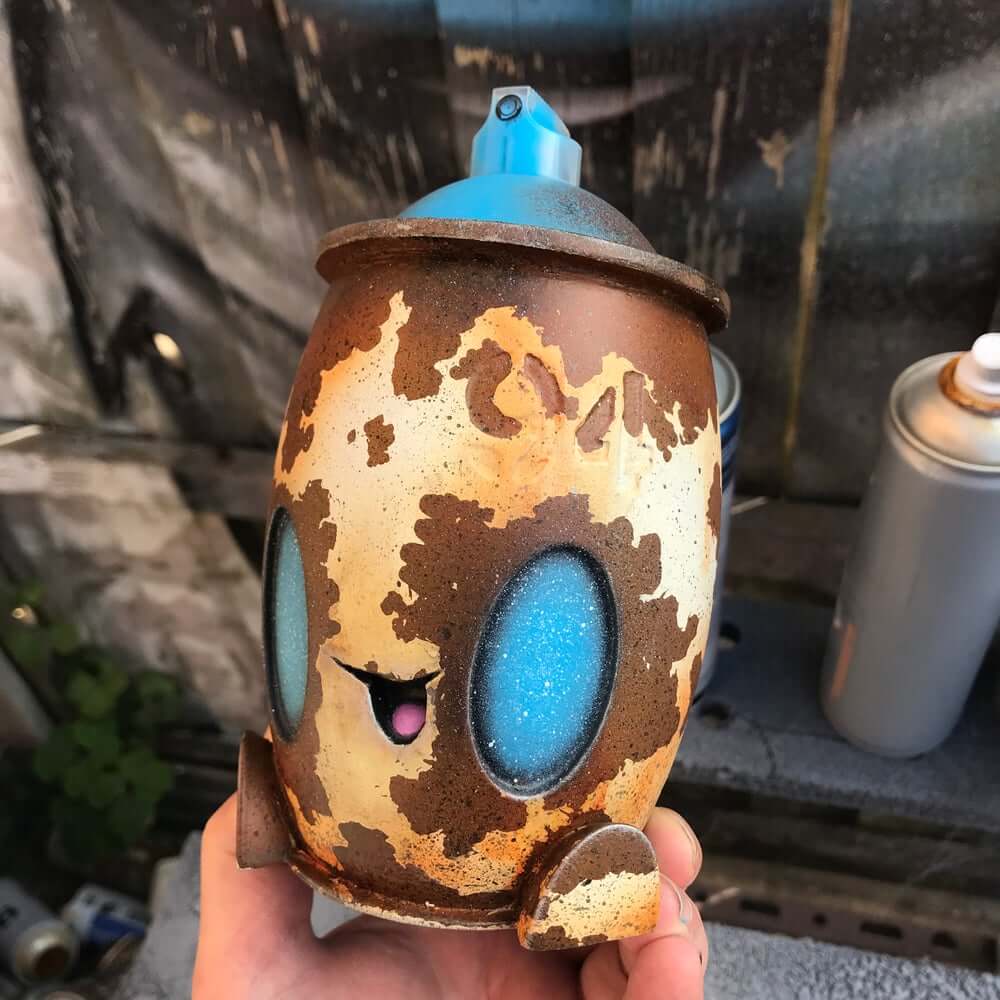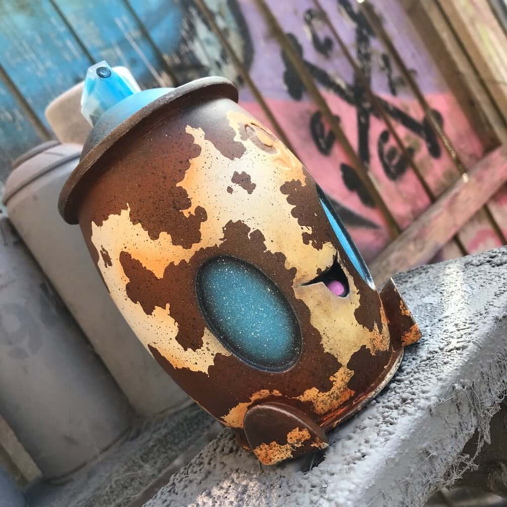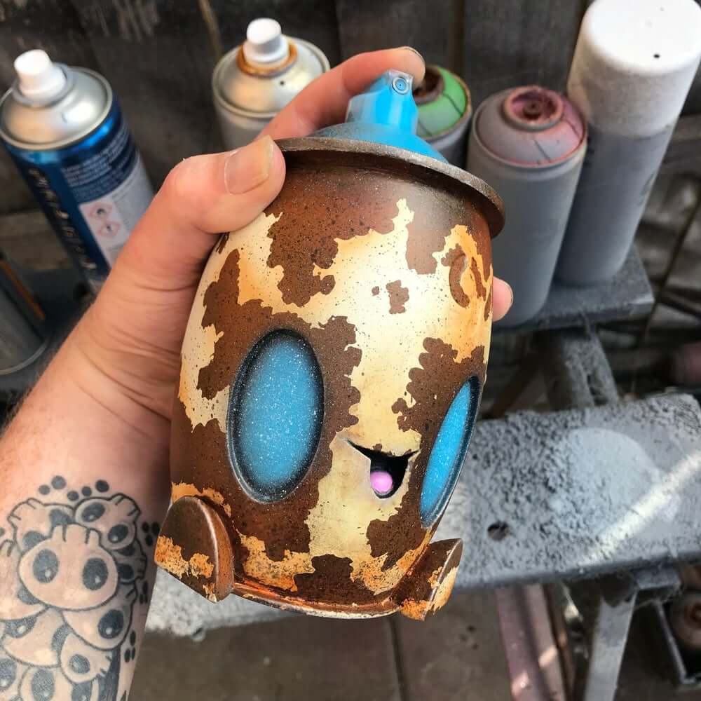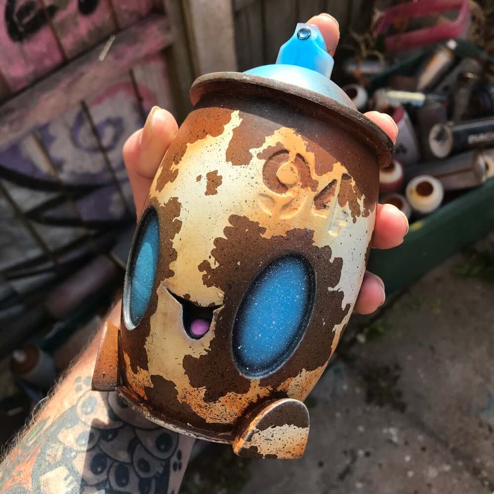This 6inch hand painted rusty Mega Can is available to purchase from Czee’s online store. It is a one-off featuring lovely blue eyes and a layered rust effect paint job. Priced at £230 + shipping and can be purchased HERE.