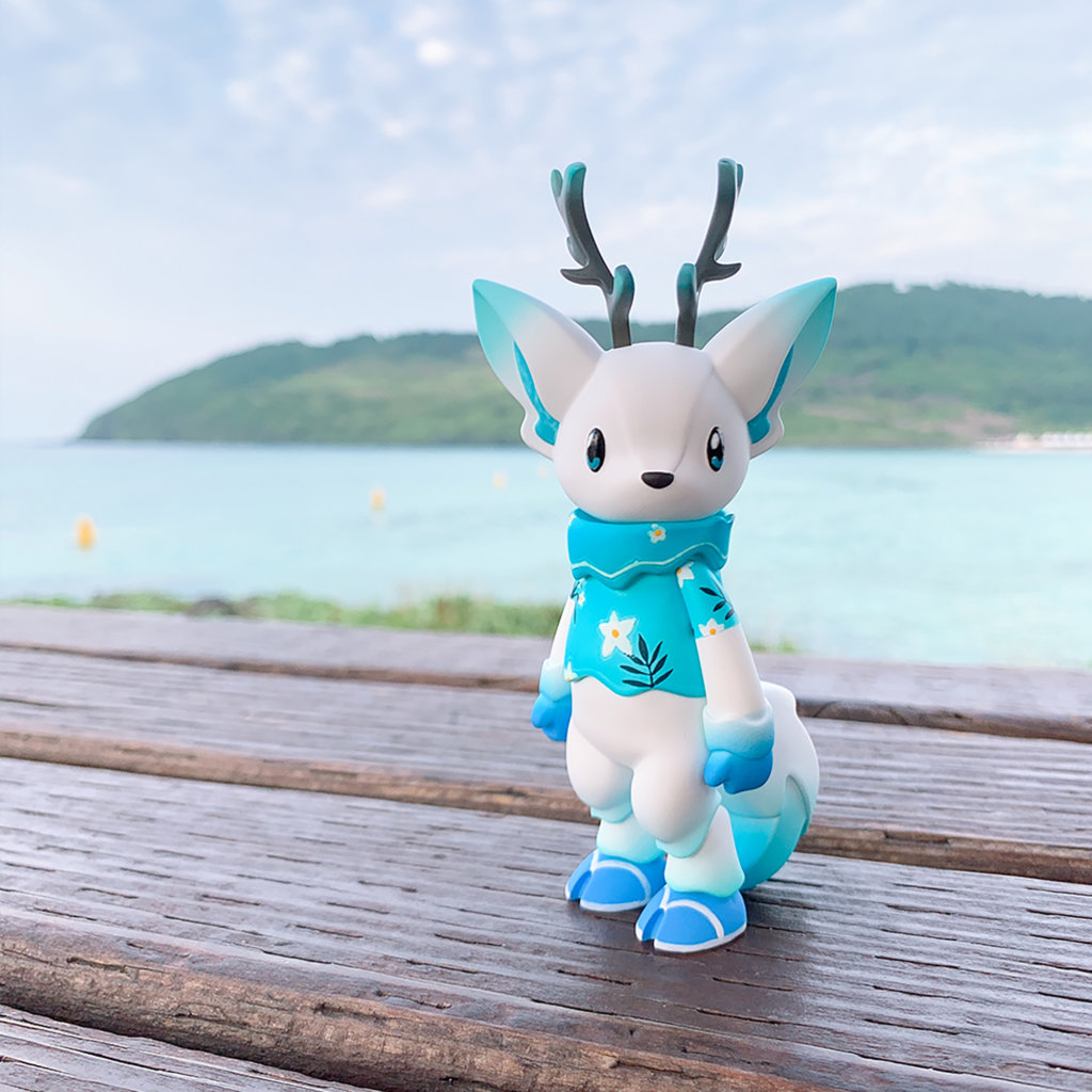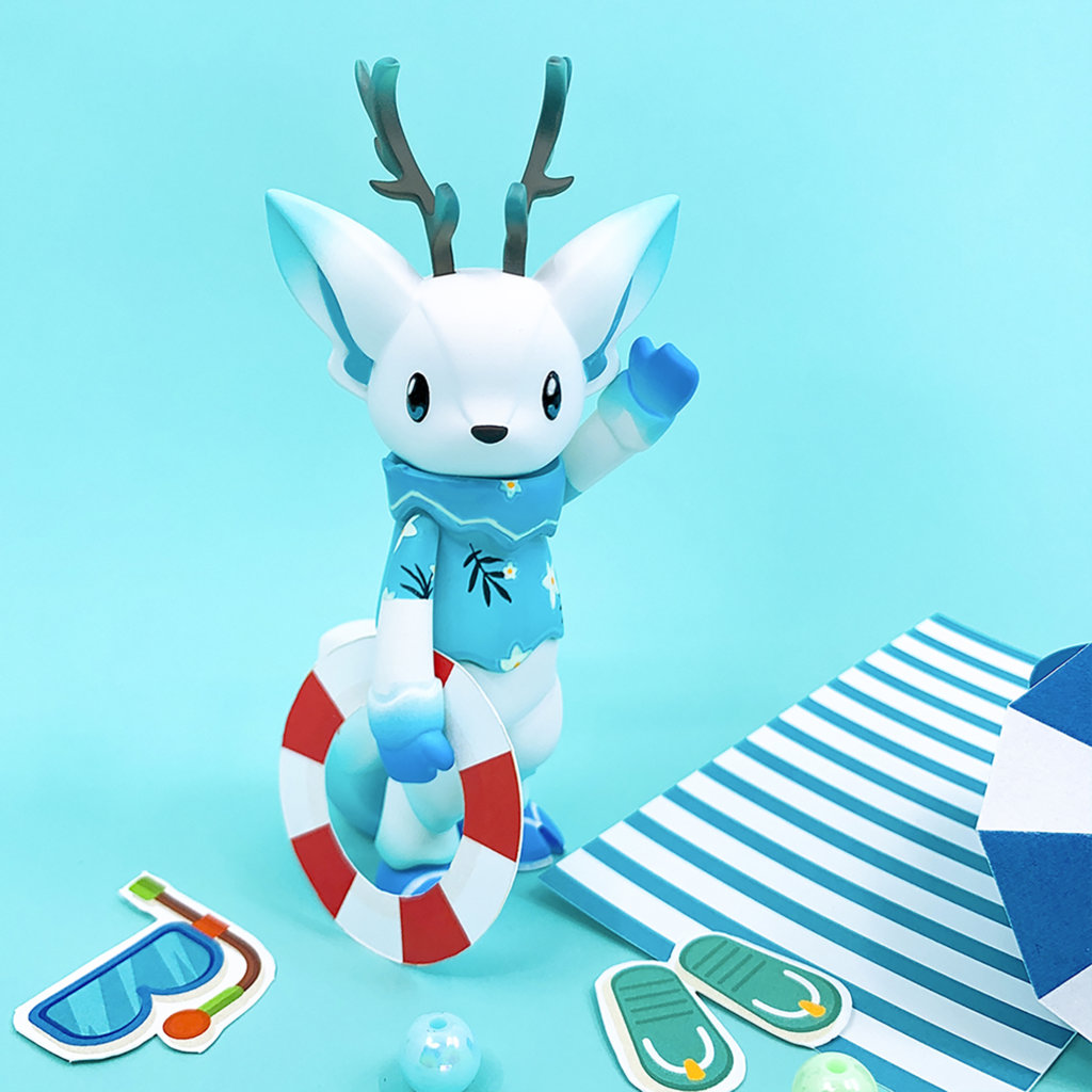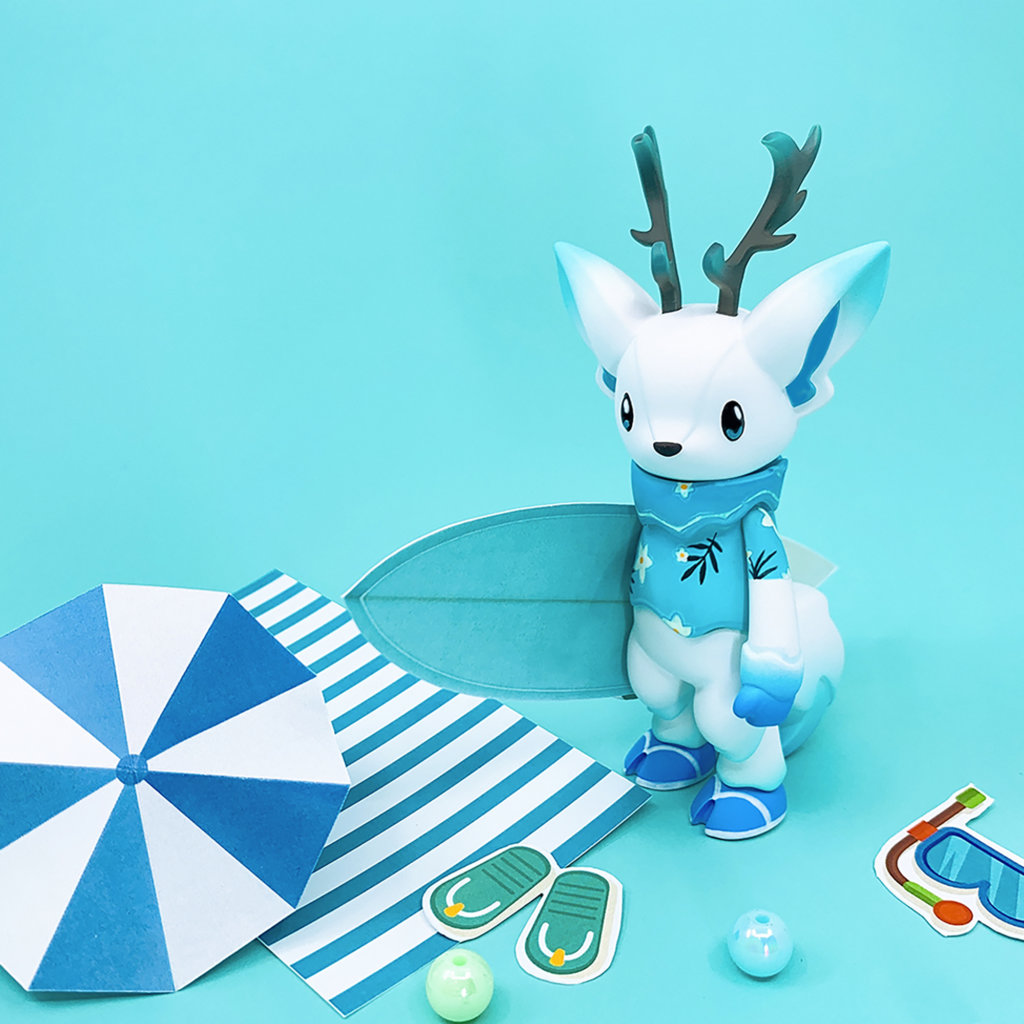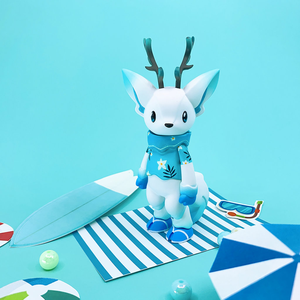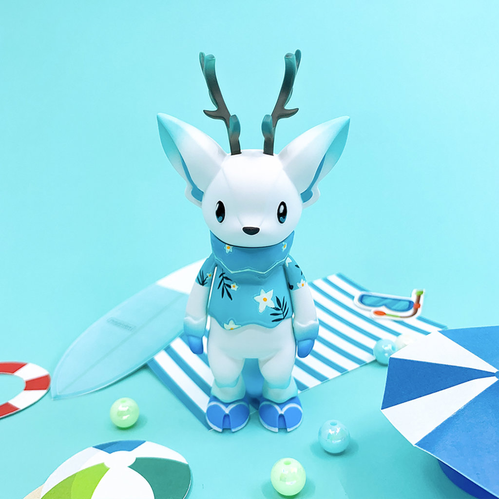 We are going on a summer holiday and so is Sanghyuk Park of BAKKUN! Well technically his new Milky Deer, HA remember the name? the designer behind one of our favourites art collectables  “Fortune Deer” showcased his new art collectable at Thailand Toy Expo back in May. We were lucky enough to see Milky Deer in person and we can tell you, Milky is a cutie and the finishing BAKKUN has given to Milky is exceptional just like the classic “Fortune Deer”. Now Milky Deer gets an ALOHA shirt to embrace the summer vibes! picture yourself on a beach with a fire on with that Polynesian music on blast chilling with Milky Deer.