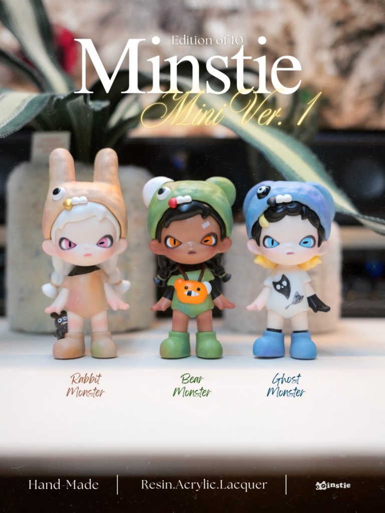 Korean artist 민스티 Minjeong Shin is back with something a little different! From illustration to painting, and now enter the world of MINSTIE with Minstie Mini Rabbit Monster, Bear Monster, Ghost Monster Edition of 10 each series, which were Last seen at TTF 2025! Plus the additional V2, which includes Eyes, Vampire and Mummy.