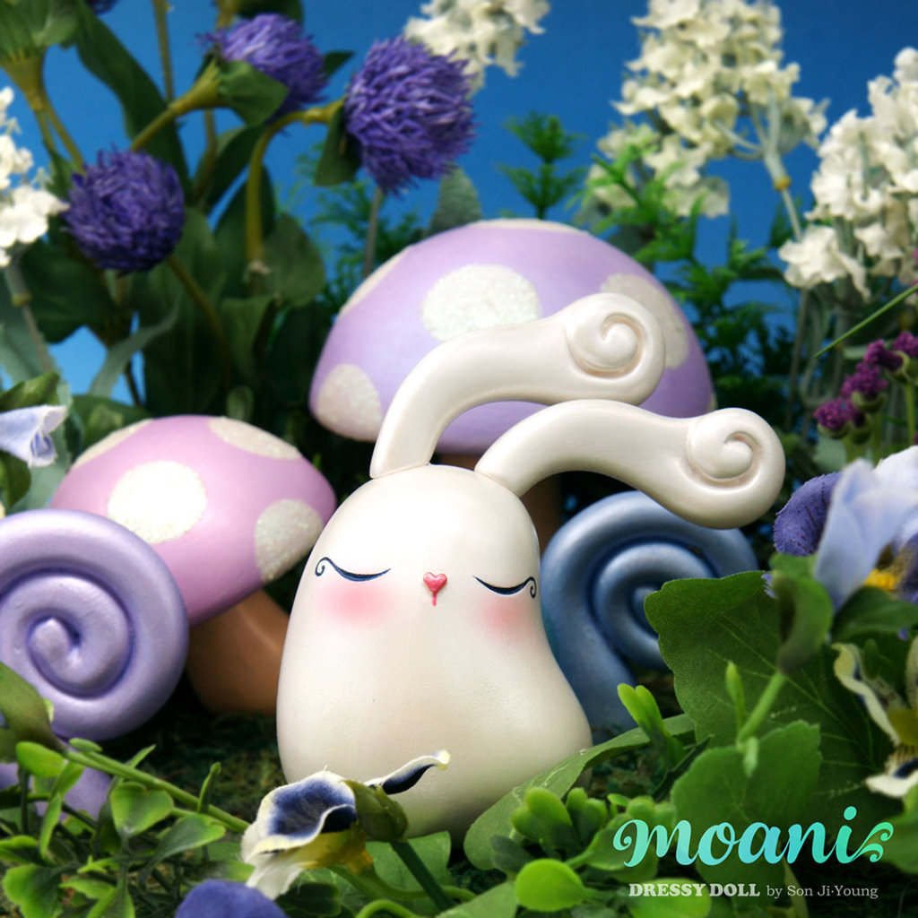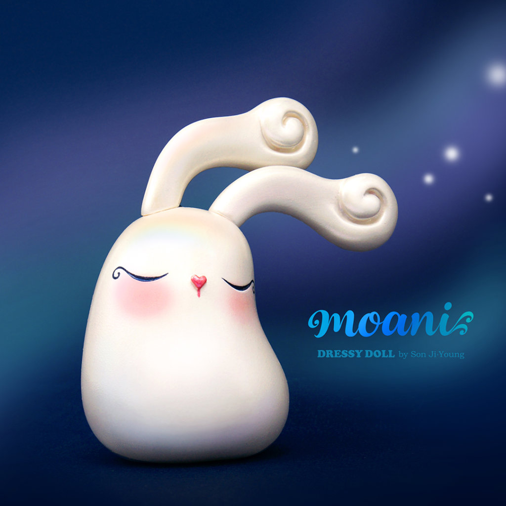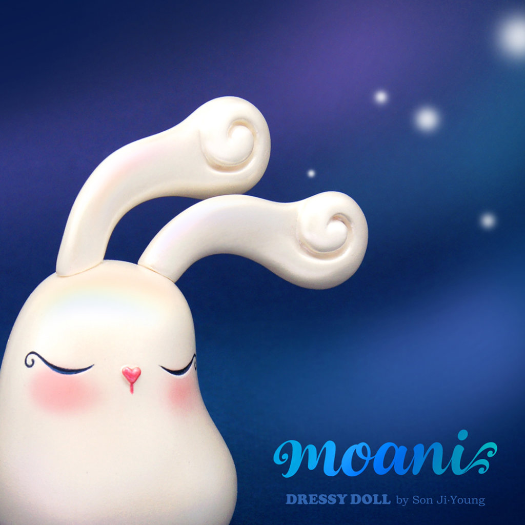 With the Spring breeze sweeping across the country, fresh ideas come into play and that’s whats sparked Korean artist Son Ji-Young 손지영 Dressy Doll to present to you her new moani designer toy! From sketch to resin, comes the first release of her bunny, Moani. If this is Korea’s answer to the Easter bunny, we are already fans of moani! we are glad to see Dressy Doll signature eyes and dreamy pastel colour palette that goes well in Dressy Dolls “TEARY” universe
