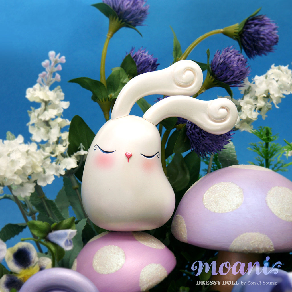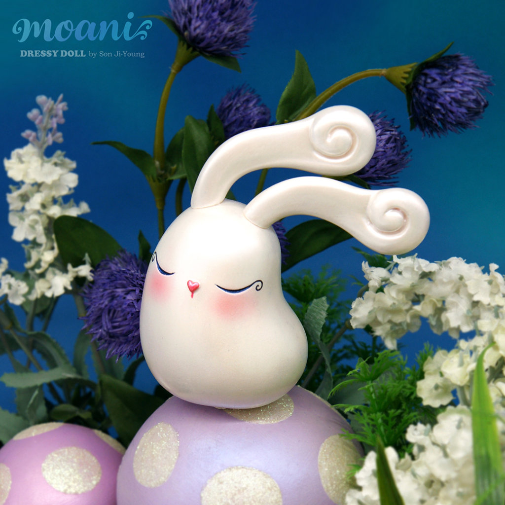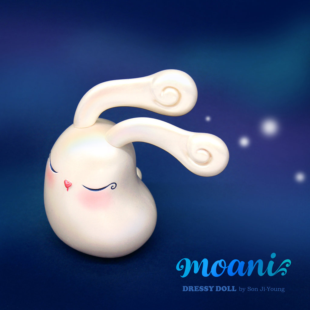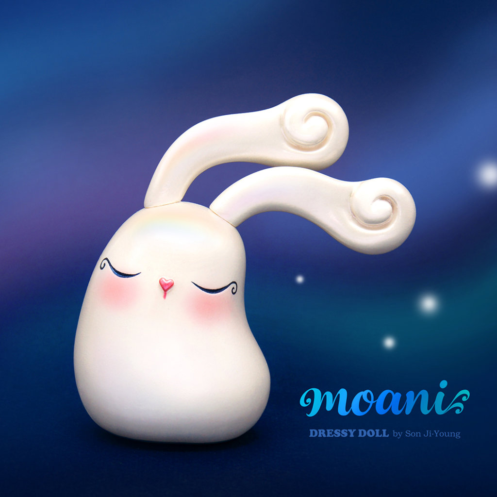 With the Spring breeze sweeping across the country, fresh ideas come into play and that’s whats sparked Korean artist Son Ji-Young 손지영 Dressy Doll to present to you her new moani designer toy! From sketch to resin, comes the first release of her bunny, Moani. If this is Korea’s answer to the Easter bunny, we are already fans of moani! we are glad to see Dressy Doll signature eyes and dreamy pastel colour palette that goes well in Dressy Dolls “TEARY” universe