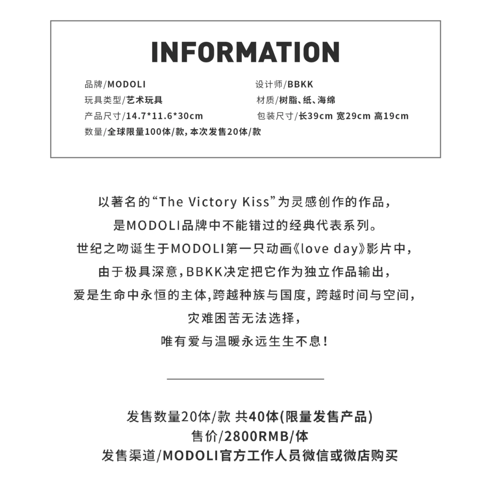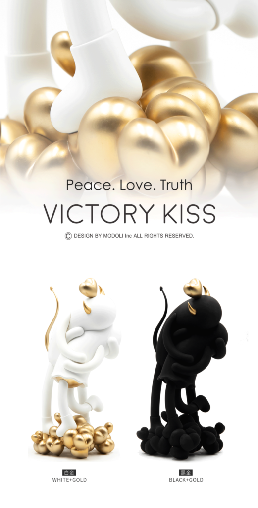 A new chapter begins with the Victory Kiss from one the China-based brands has been on our radar over the past couple of years. The BBK world of “MODOLI” really was something different and all eyes focused on MODOLI range. If you love shapes, sleek, arty minimalistic designer toys then concept designer and CG artist BBK should have your attention too. Various series as well as limited releases which will feature Moon River blind box series, Aoctor and PARTS have now seeped into international retailers. The world of MODOLI made an announcement that two versions of “Victory Kiss” will be made available.