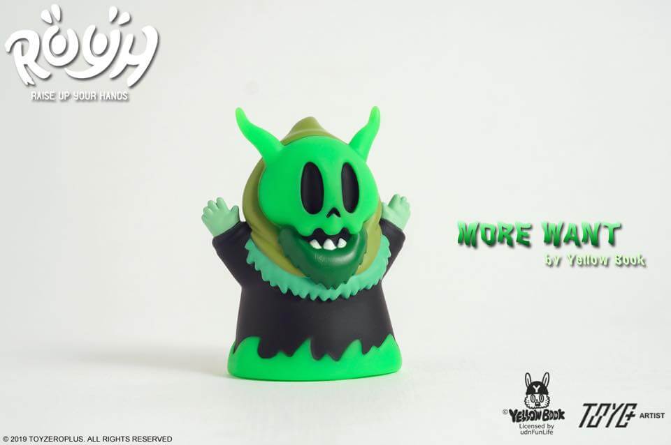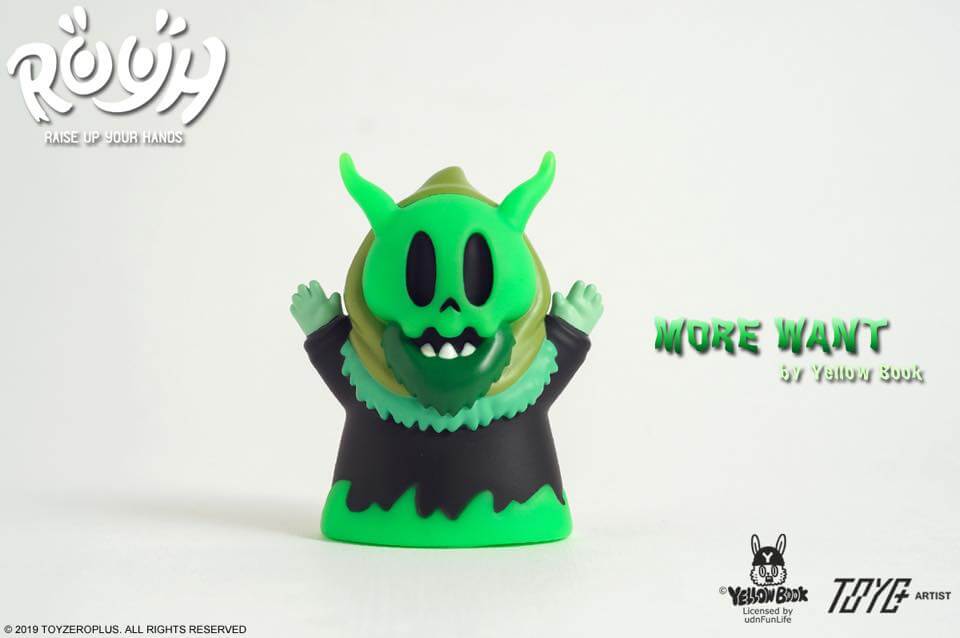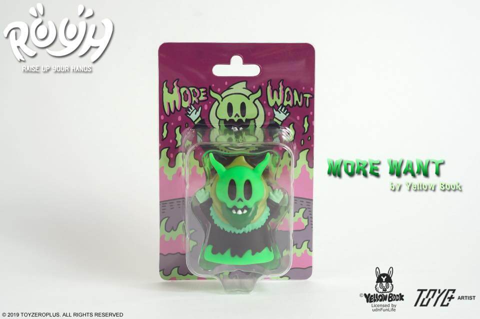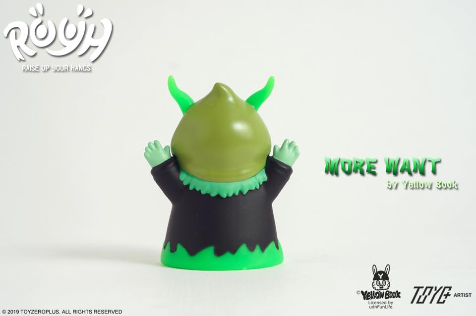 Welcome the popular Taiwanese online cartoonist, “Yellow Book” to join the “Raise Up Your Hands (R.U.Y.H.)” family with TOYZEROPLUS! Made of soft vinyl, “More Want” is 6.6CM tall and is packed separately with a back card.