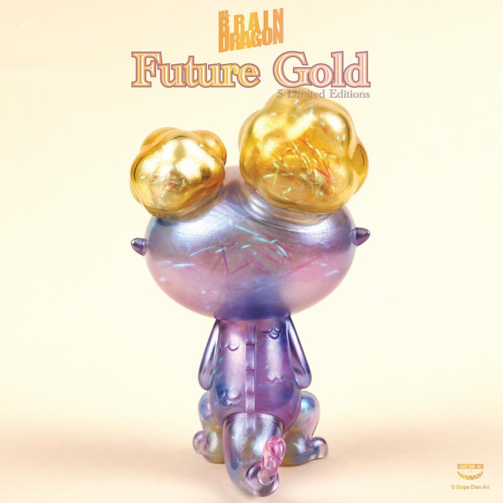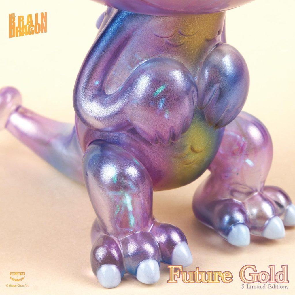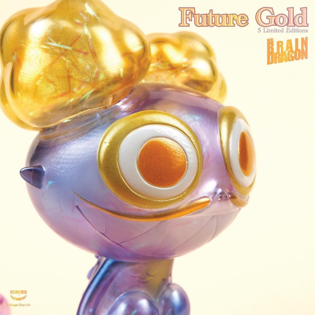 Hong Kong based Grape Chan Art, Mr. Brain from the Monster Town series made the transition into designer toys just over 3 years ago! Time flys! Grape Chan Art and illustrations have been seen all over Asia. Seen at various pop-ups in Asia, already gaining a fanbase and collectors around the world loving MR.Brain Dragon the new year sees Mr Brain Dragon get a special new skin. Meet the all-new MR. Brain Dragon Future Gold. Check out all the sparkles inside Mr Brain! Grape Chan is giving you the chance to own one of these limited editions MR. Brain Dragon Future Gold.