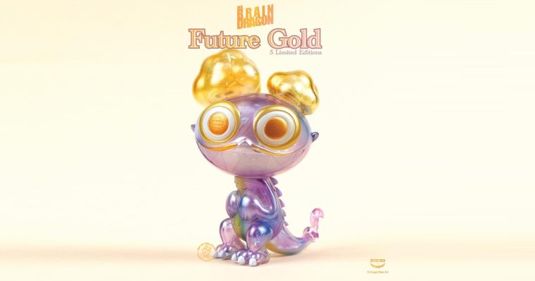 Hong Kong based Grape Chan Art, Mr. Brain from the Monster Town series made the transition into designer toys just over 3 years ago! Time flys! Grape Chan Art and illustrations have been seen all over Asia. Seen at various pop-ups in Asia, already gaining a fanbase and collectors around the world loving MR.Brain Dragon the new year sees Mr Brain Dragon get a special new skin. Meet the all-new MR. Brain Dragon Future Gold. Check out all the sparkles inside Mr Brain! Grape Chan is giving you the chance to own one of these limited editions MR. Brain Dragon Future Gold.