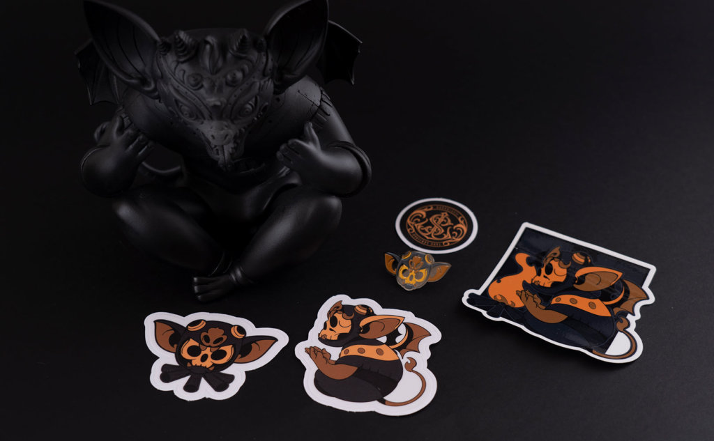 The set INCLUDES: STICKERS, PIN, RESIN PIECE AND CASE. 10 pcs edition.