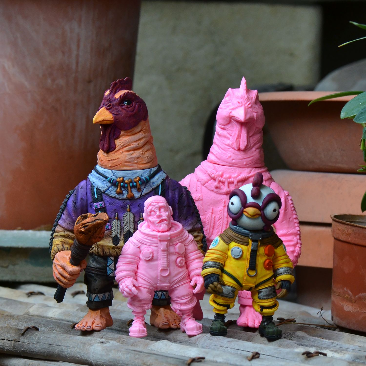 Daniel has hand painted resin editions of his Bird Shaman available, and an all new character, the Buck Explorer (which is a collaboration with Chknhead). Along with these, Daniel will also have blank pink resin versions of the Lunar Creep and Bird Shaman too.