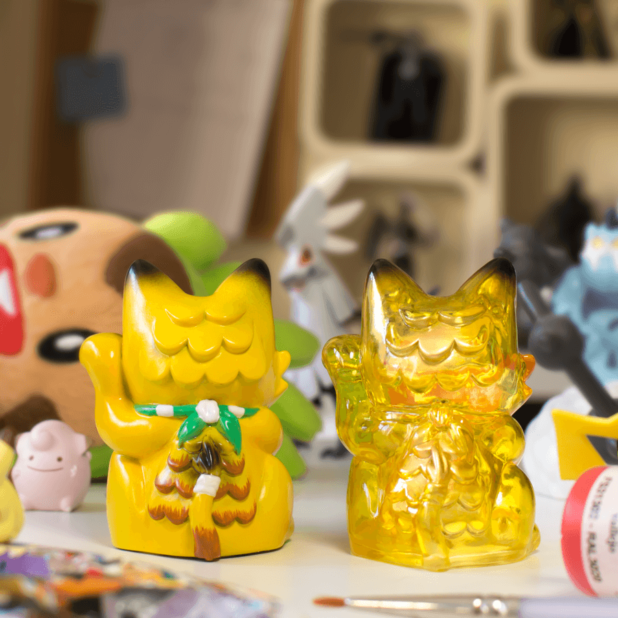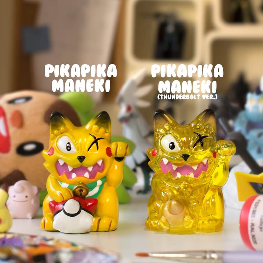Shall we start with the Maneki Wananeko of PikaPika release? With a Regular and Thunderbolt version available, this painted sofubi will be priced at 30euro each. This will be available HERE.