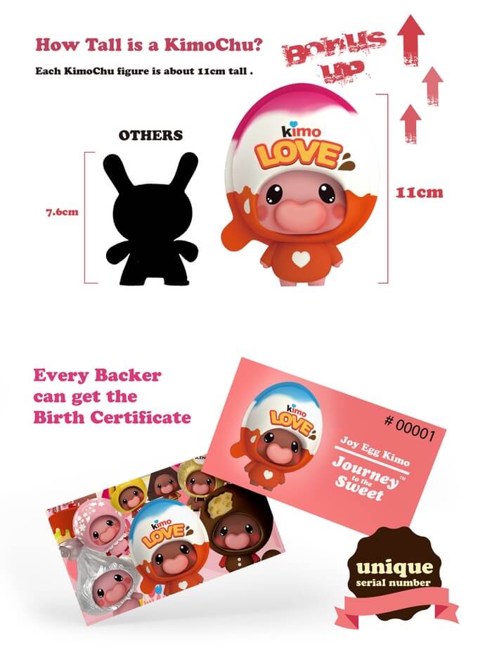 Here is the chance to own the Extra Kindor Kimo figure when you back the KIMOCHU: Limited Edition Art Toys by JOURNEY TO THE SWEET Kickstarter! plus the extended “Early Bird: 6 blind boxes + Kickstarter edition”. To top it off extra add-ons.