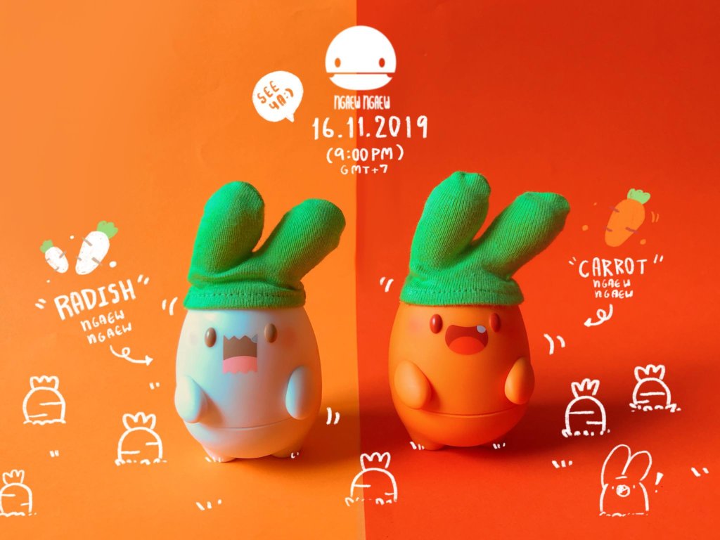 They say eating Carrots will give you better night vision! and Radishes make farts extra stinky! Who knows if its true or not all we know is you won’t want to eat Pang Ngaew’s “Ngaew ngaew” Carrot and Radish vinyl editions! Pang is offering you a 2nd chance to own this crop this weekend. Just as adorable as the resin editions and Pang has added some willy warmers ooops we mean ear warmers 55555.