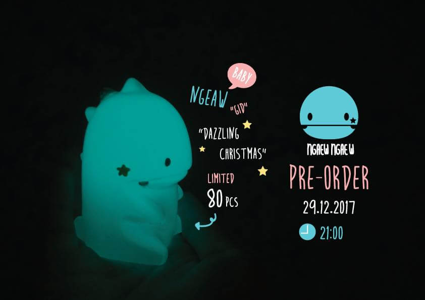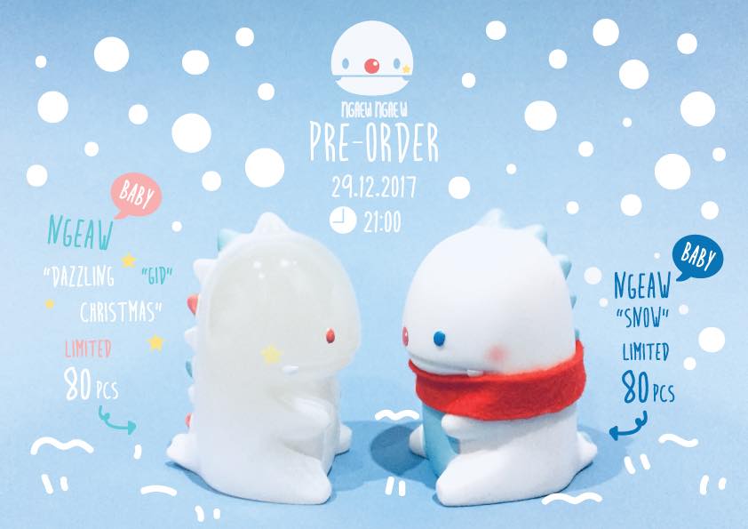 Heading into 2018 and Ngaew Ngaew are back! finishing off 2017 with two new Baby Dino Ngaew. Like last year Ngaew gets the similar Christmas/snow colours but this year its a tad different as Ngaew Ngaew has some GLOW IN THE DARK fun. Two to choose from but both limited.