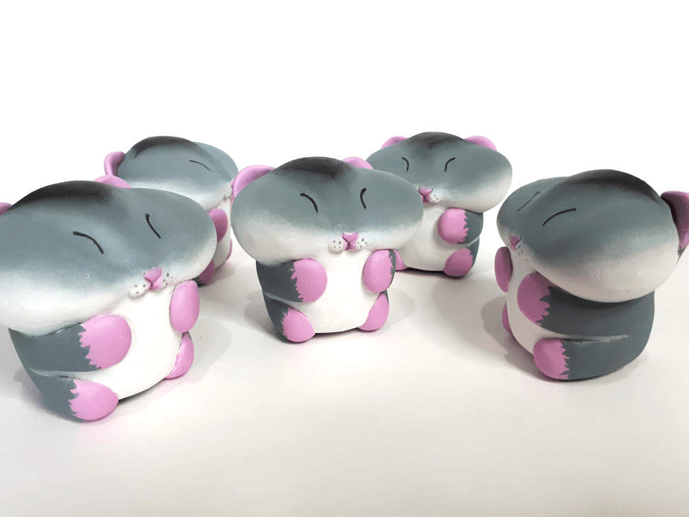 Molly Bolder aka Molly’s Makes love for all things cute as paid tribute to her late and great Nibbler pet hampster by making a run of these cute “Nibbs” Resin figure! We sware Molly has taken inspiration from our own big fat cheeks, HA. This is the first limited run of 5 (now only 2 left) and each is hand cast, painted, then finished with a little glossy nose by Molly herself. Molly presents to you Nibbs the 2-inch resin figure of hamster adorableness.