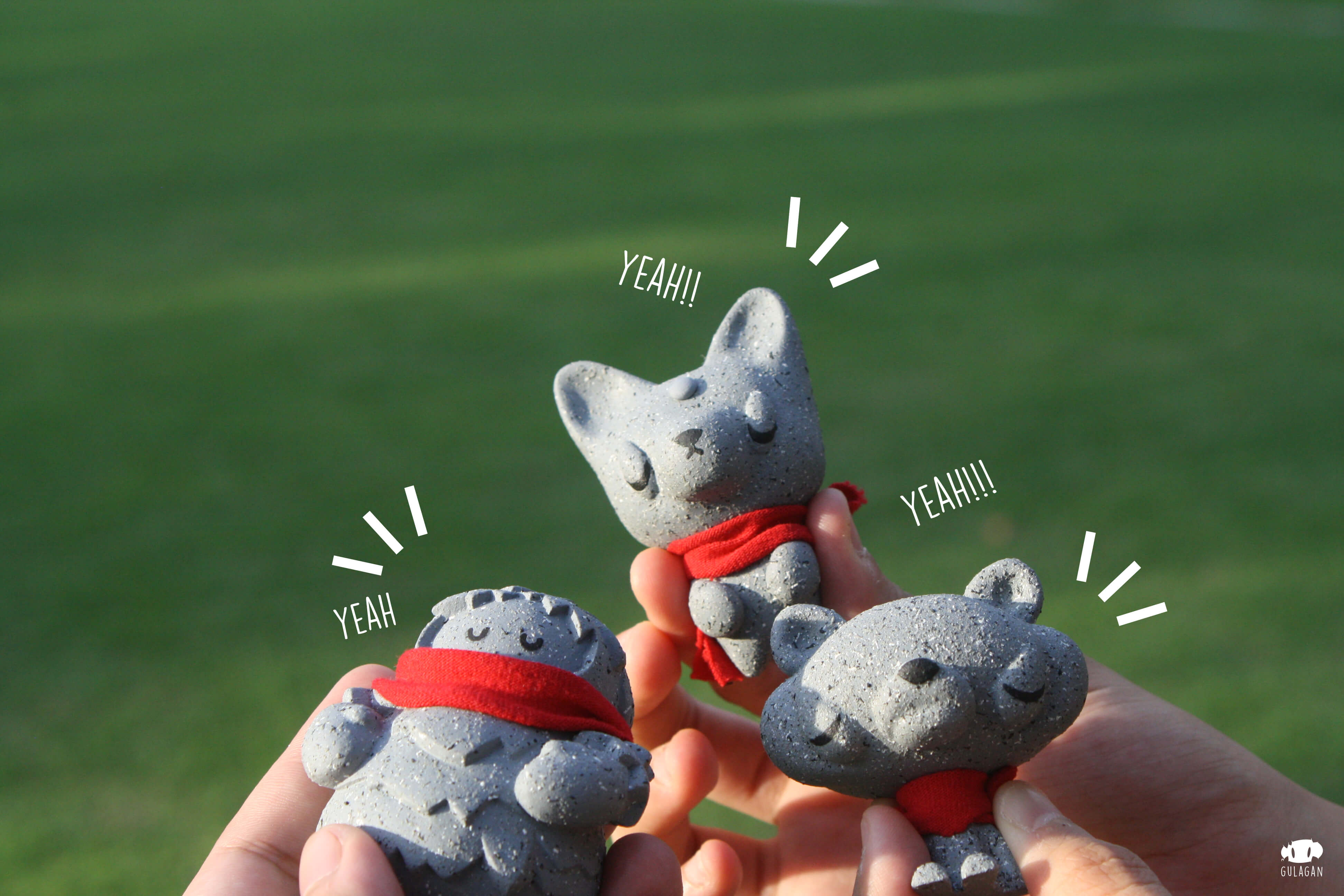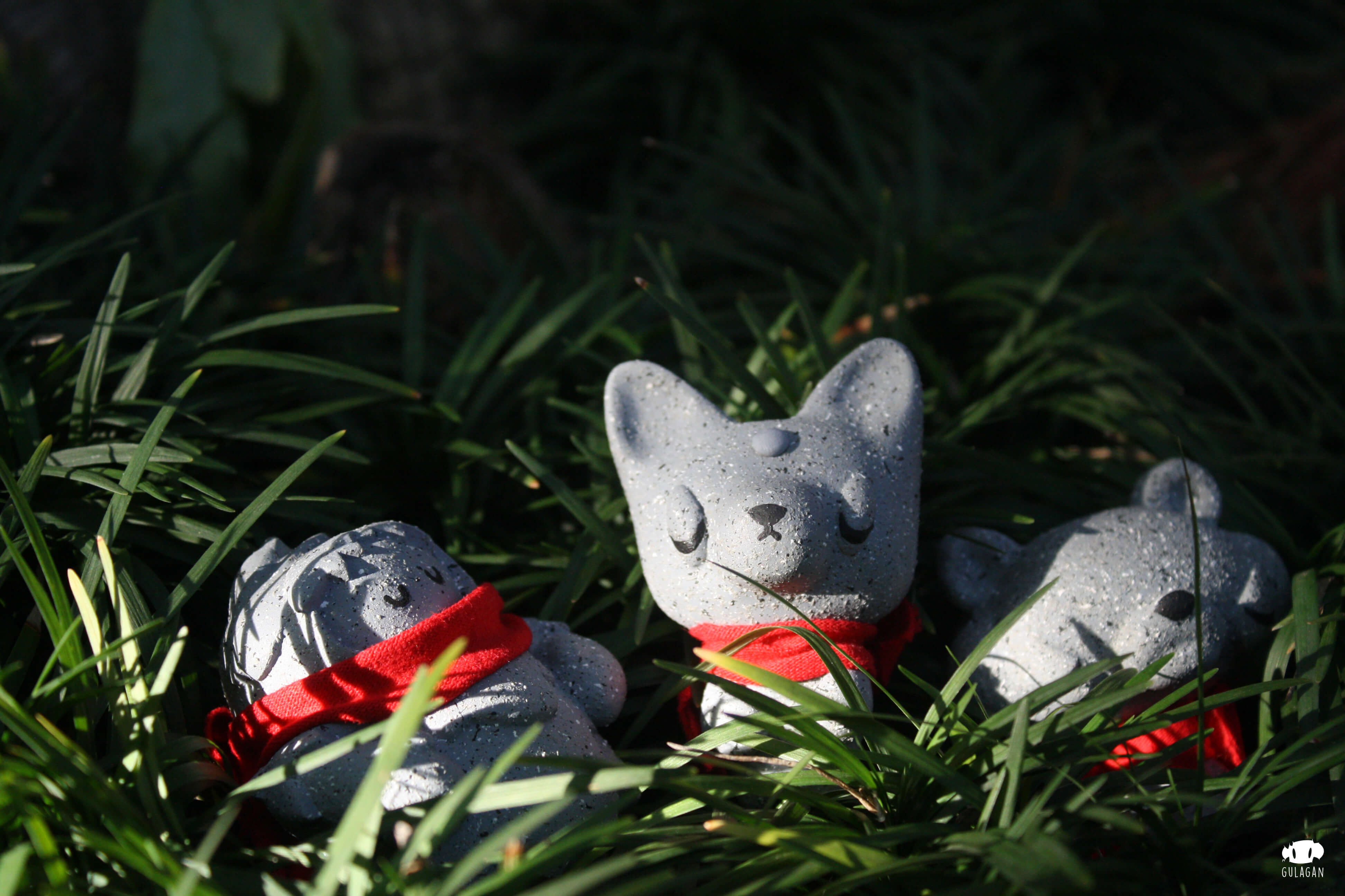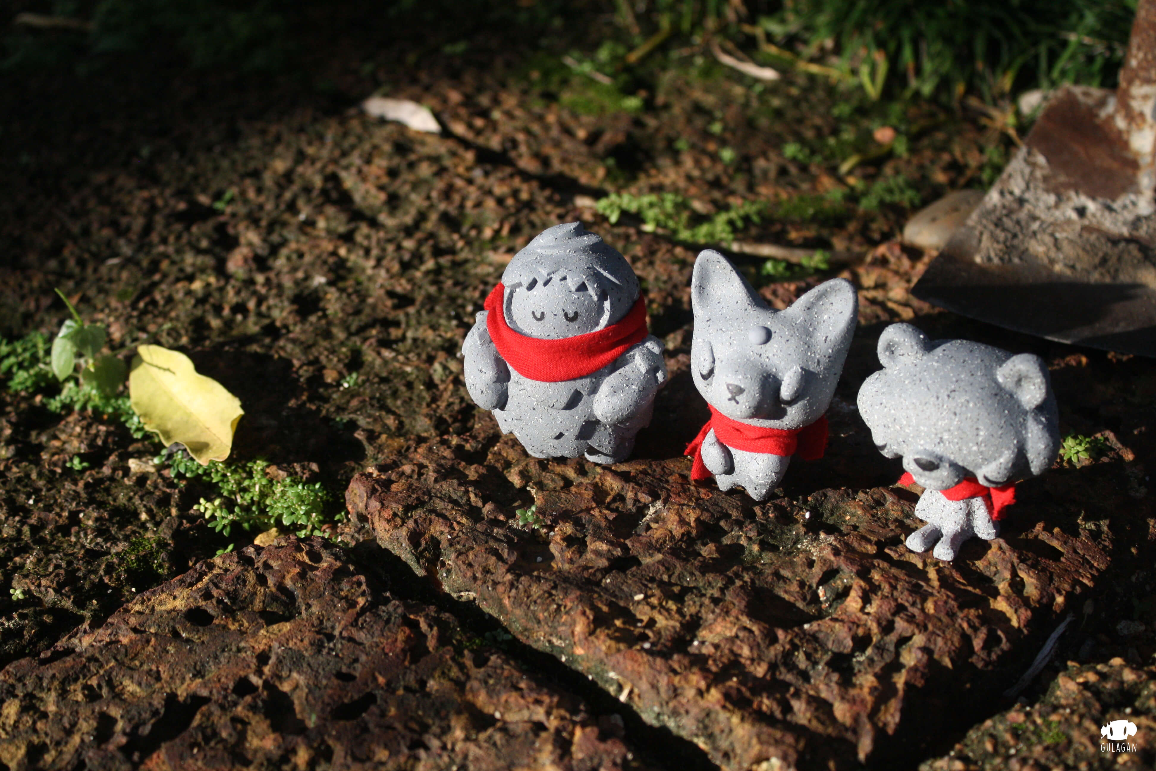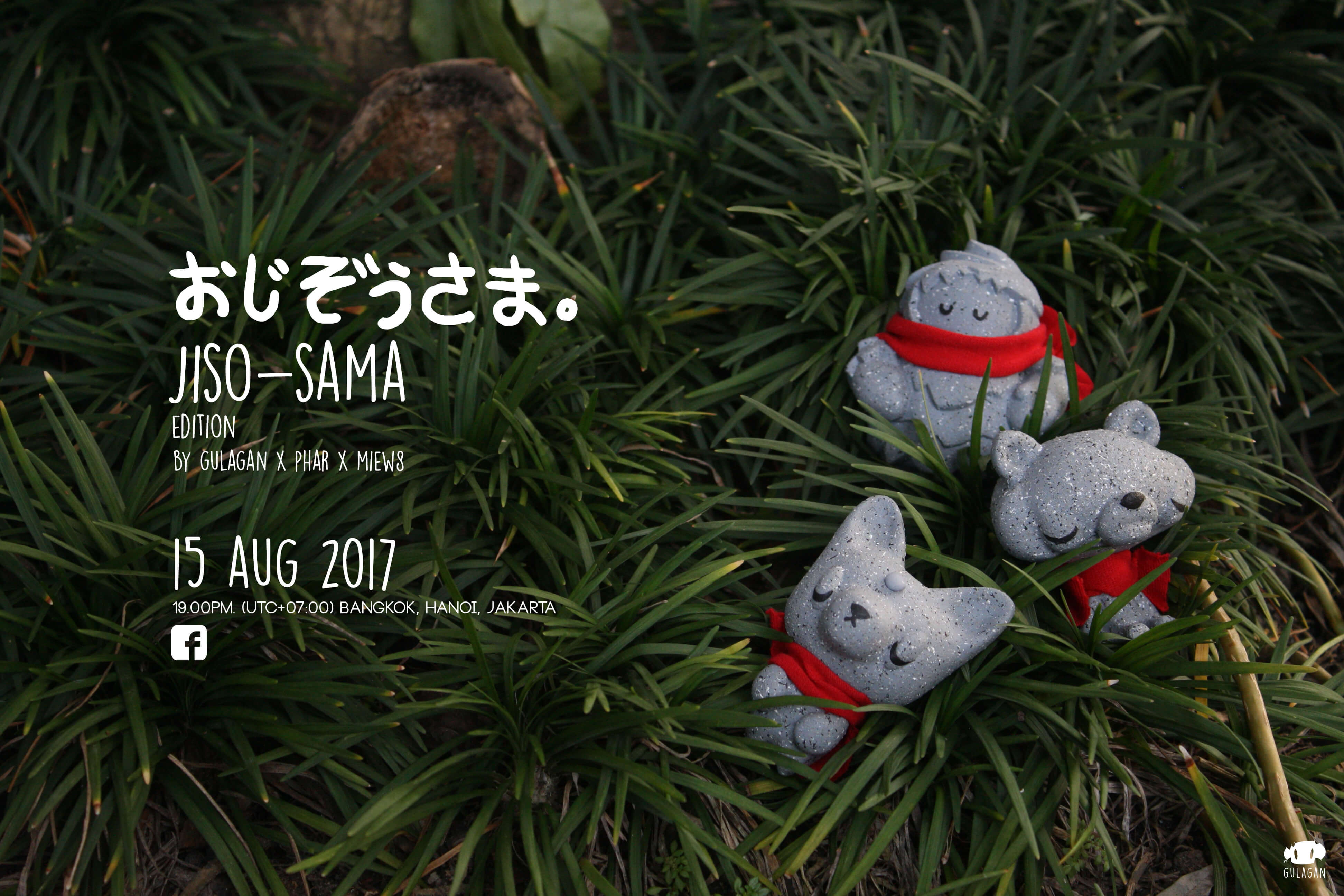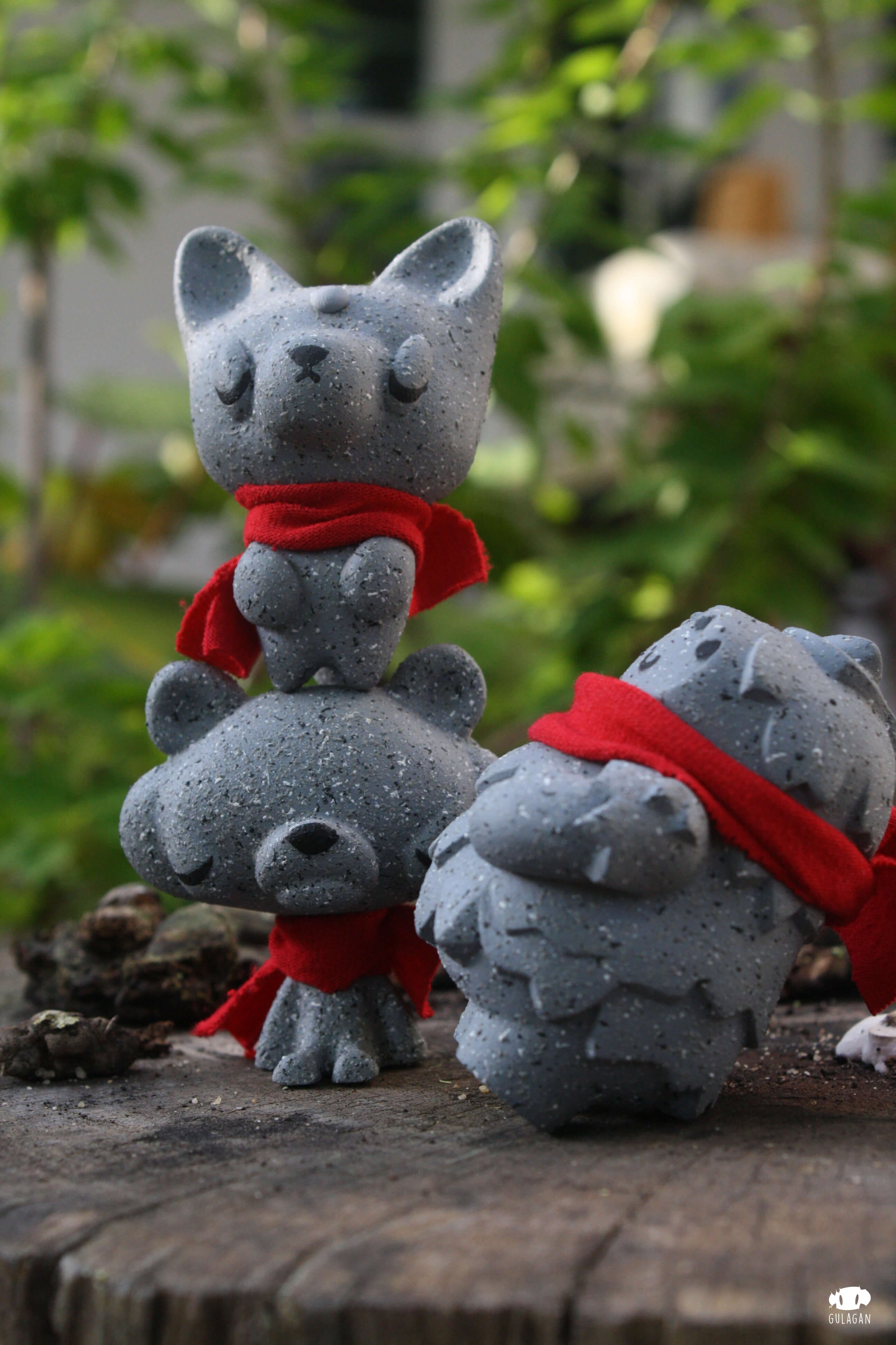 Great news from Thai artist GULAGAN in collaboration with PHAR x MIEW8 for collectors who are after Ojiso-sama Jiso-sama! The countdown for the Pre-Order to start which is in a matter of hours. Like we said before, the three new characters; NewTreeo (tree) x Nomphing (fox) x Raja (tiger) appear in a “stone” like form with a red scarf accessory in this new edition. All hand resin cast measuring about 2.8 inches tall. These first debuted at ATT 2017 now you can have the chance to own them as they get an online release.