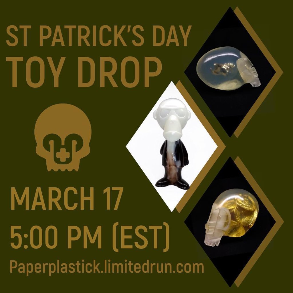 With three releases, all limited to 13 pieces of each. An Irish Coffee Full Sized Monkey Assassin. Subscription size skull with LUCKY METAL CHARMS, and their largest skull with GOLD COINS floating inside! Dropping at 5pm EST today (which is 9pm UK) over at paperplastick.limitedrun.com.