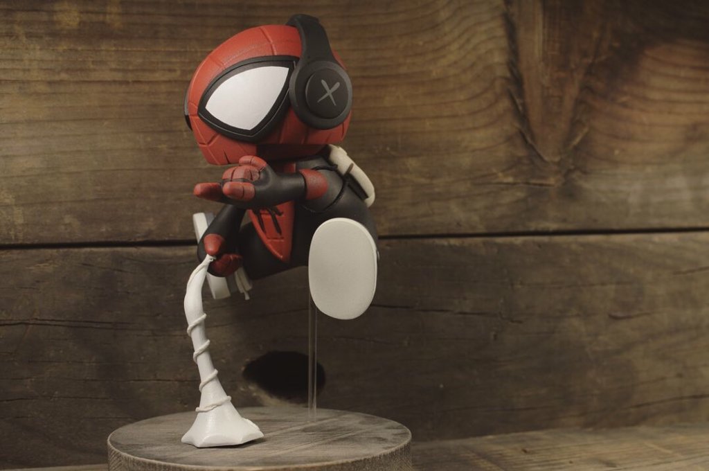 Limited to five pieces, this new Parker SpideyTrooper swings in 8inches tall (the handmade figure is 5inches). Scultpure consists of pressurized resin, acrylic, wood & thread. Available HERE, priced at $350 (about £279). Catch him rocking Airmax, a Jansport Bag and Sony headphones.