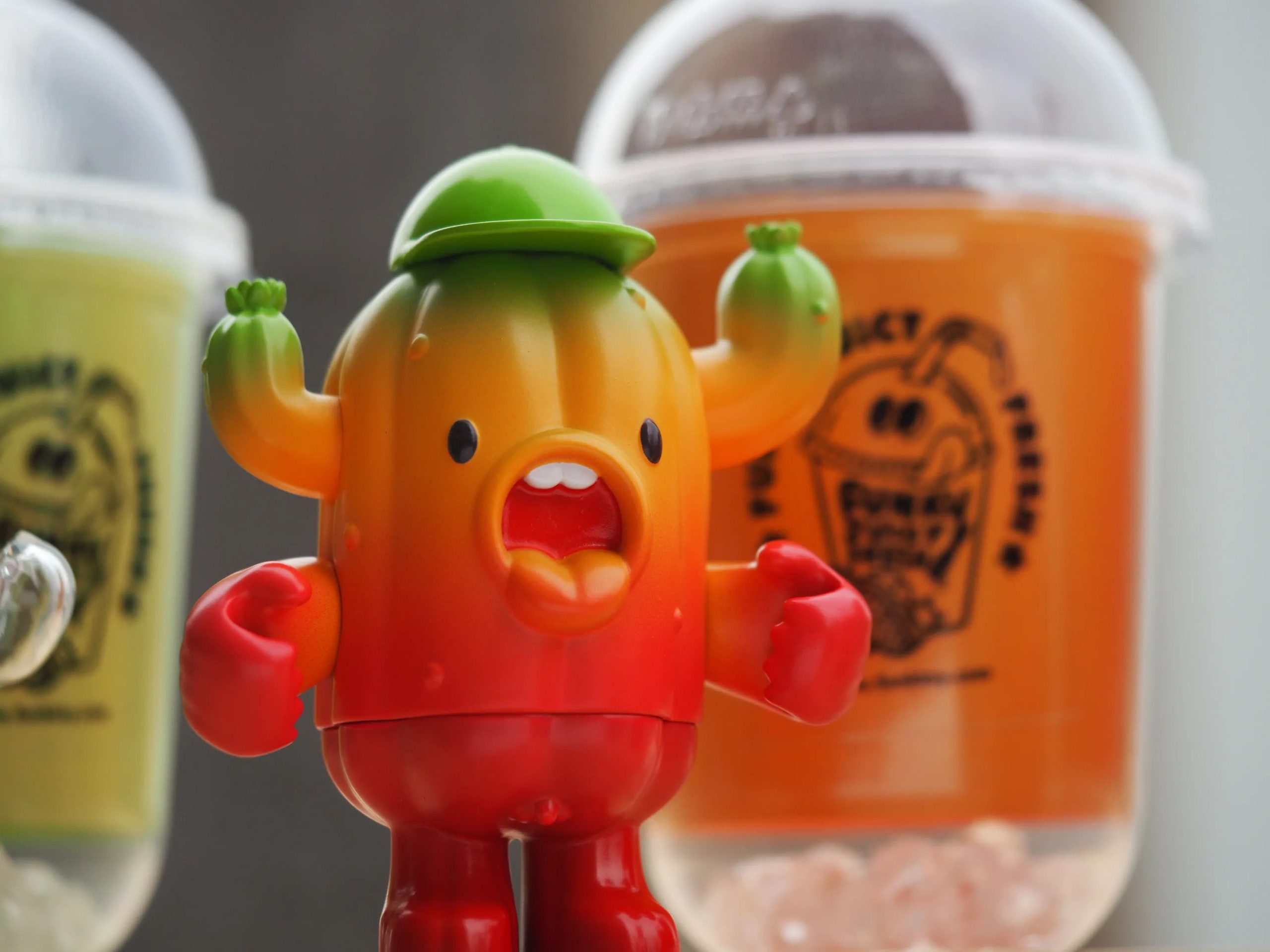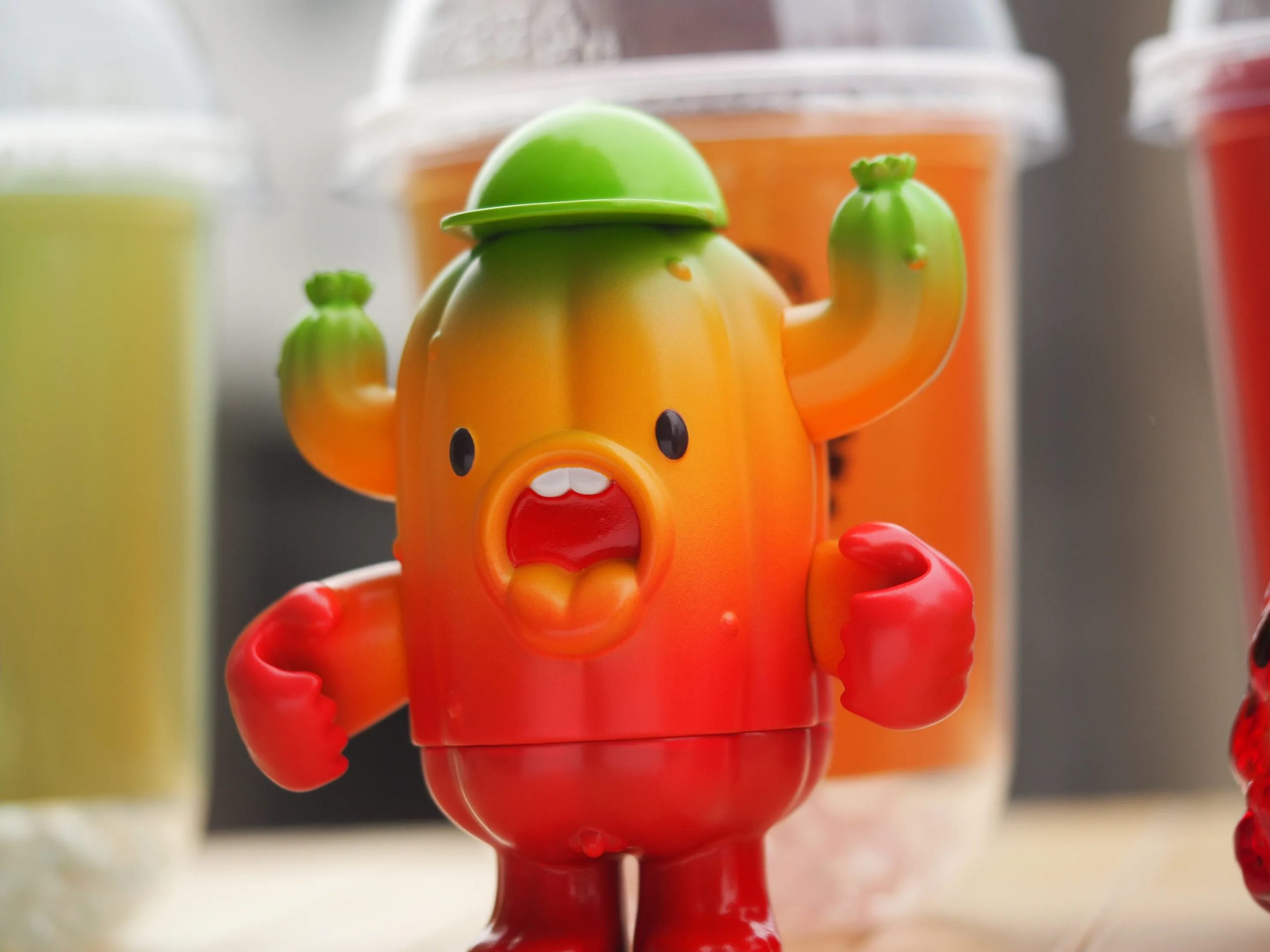 Do you need some delicious and healthy fresh juice after a daily life of eating a lot of junk? No problem! Funky Fresh Juice PATU Mango is here! Inspired by bubble tea, Funktoy mashes up his fantastic cacutus PATU with some frutieness. You can tell its the Summer as PATU has its bits hanging out, HA.