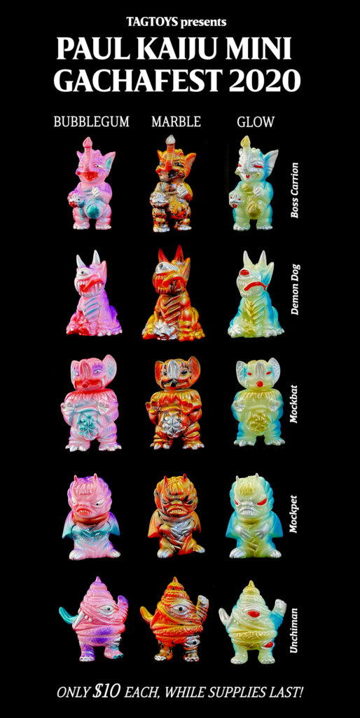 Toy Art Gallery presents GACHAFEST 2020, this fest brings together several limited run festival releases of the beloved mini figures, and they’re specially priced at only $10 apiece.