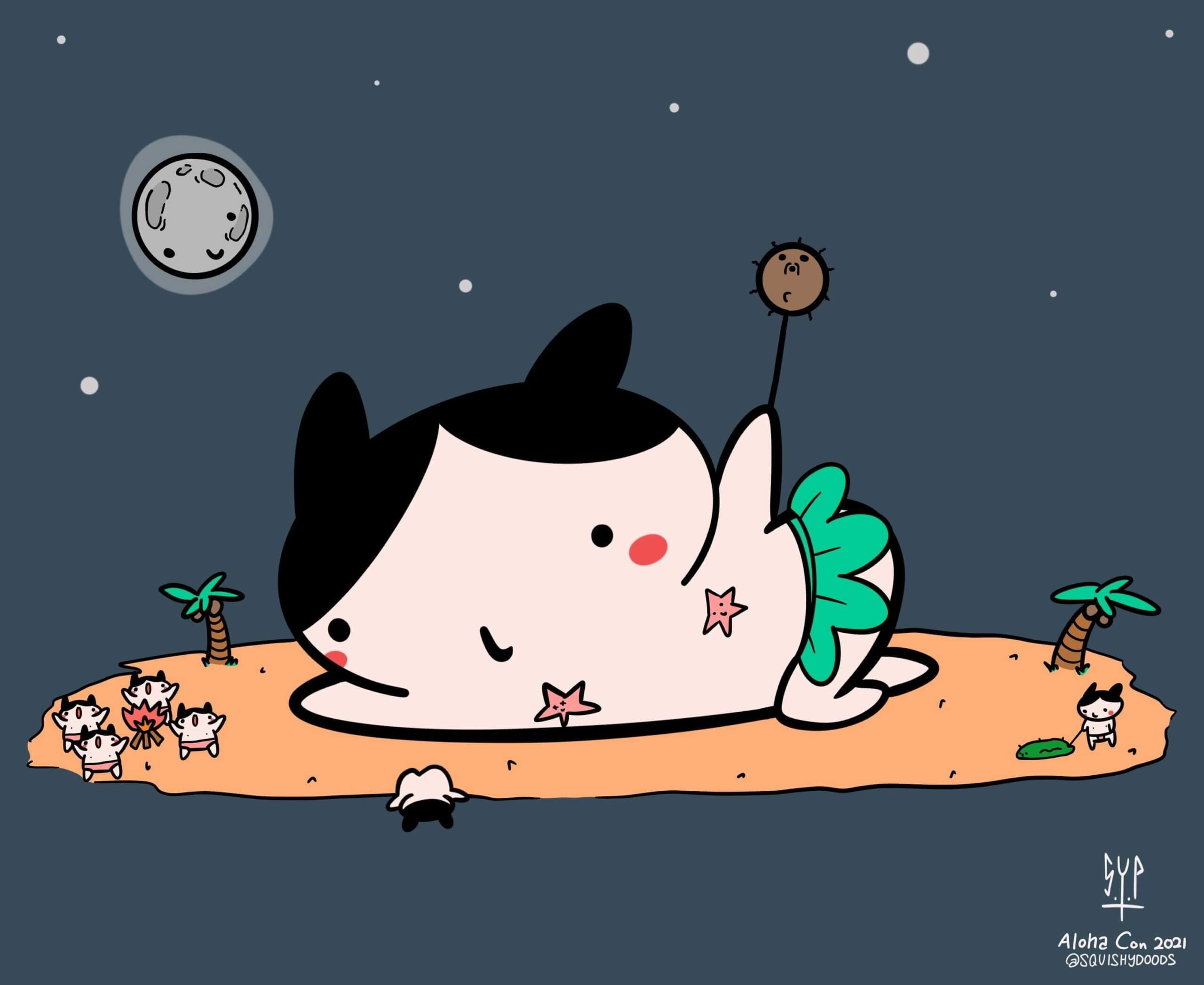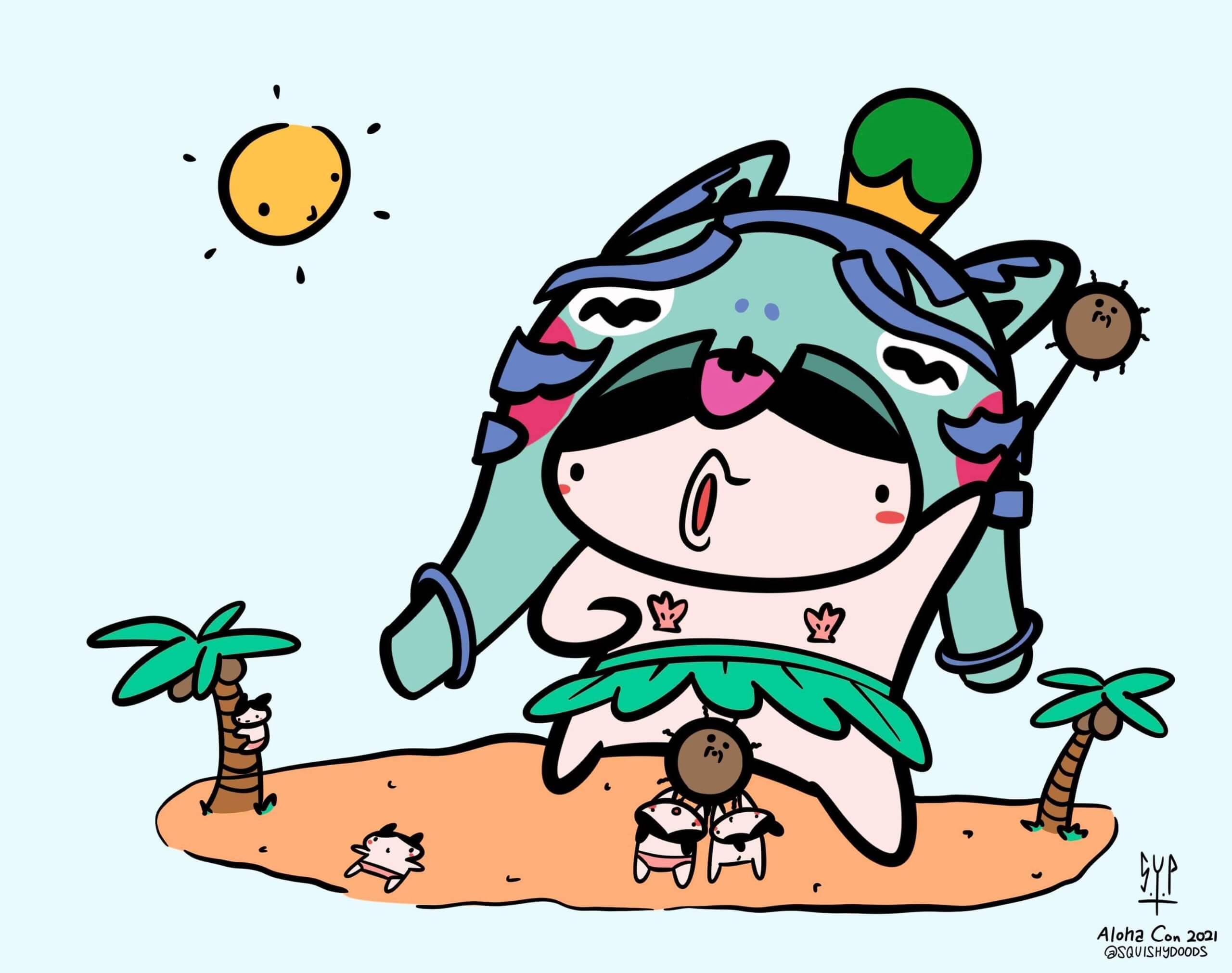 9 days to go before Aloha Con! two worlds combine as Singapore based artists Tanavit23 x Squishydood unite to present to you “Pepe” Some regard Tanavit23 x Squishydood aka Squishy Pea as the Posh n Becks of the designer toy world and now they give you there offspring! Pepe the fun-loving who loves the air flowing between its bits whilst butt naked. Pepe is now getting ready for his flight to HAWAII BABY! and you can have a chance to smother Pepe with love at Aloha Con. That’s not all Squishy Pea art prints done by Squishydood will be made available too and some of the proceeds will go to a select charity.