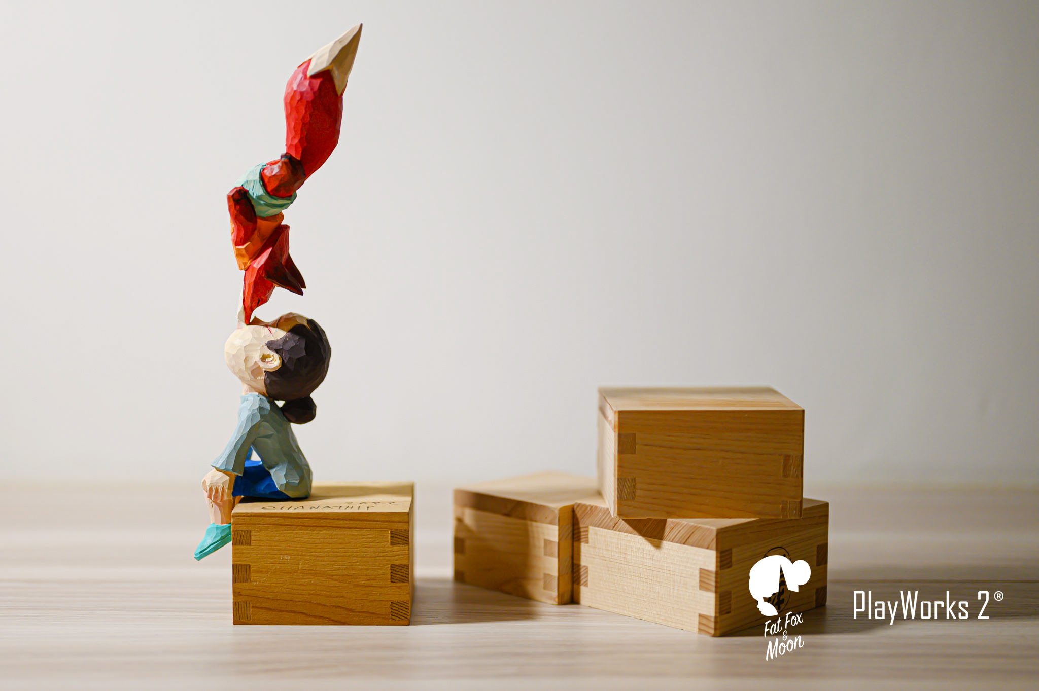其中小狐狸一角,是藝術家為自己所創作的角色。 Chanathip 在大學時期非常喜歡看日本卡通,喜歡到甚至會去撿拾木屑來雕刻這些動漫中的角色。「這是我實現幸福的時刻!」 Chanathip 如此表示。 在雕刻了一段時間後, Chanathip 想創造屬於自己的角色,於是這個藝術家口中有點略肥的「小狐狸」就這麼誕生了!