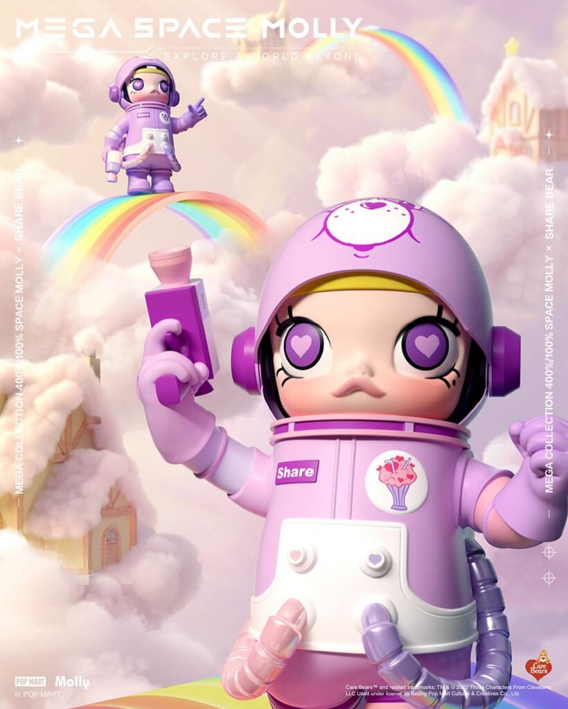 POP MART’s MEGA COLLECTION Space Molly is back with a brand new license collaboration! Get ready to pose for the classic The Care Bear Stare! Sharing is caring, right? This Purple suits Space Molly and we are sure NASA should make suits like Space Molly’s HA.