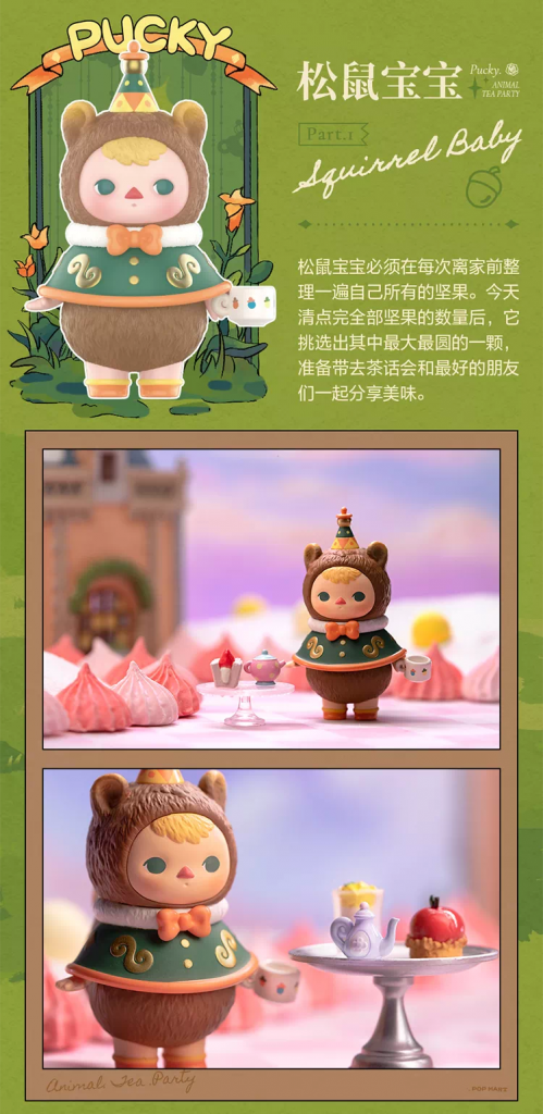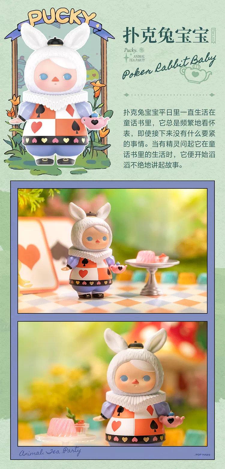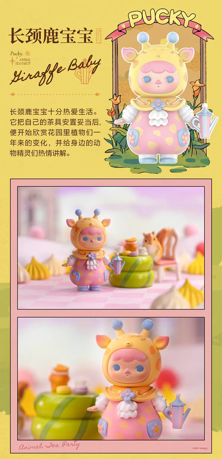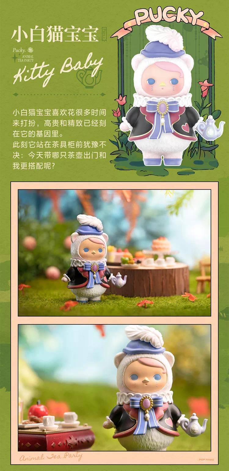 Down the rabbit hole we go as POP MART x PUCKY presents to you the Animal Tea Party blind box series! Put your fancy outfit on and get your tea and scones ready, as they invite you to one party where pinky finger are most welcomed. Prepare to be dressed to impress and one enchanting tea party like non other. Pucky is waiting for you and all set to show off all the outfits! TEA and CAKES are ready.