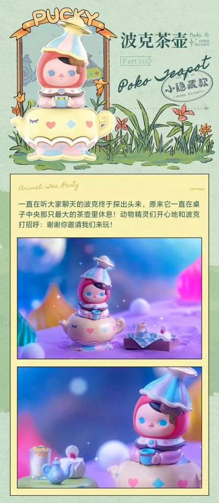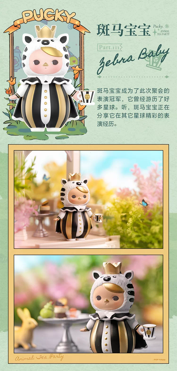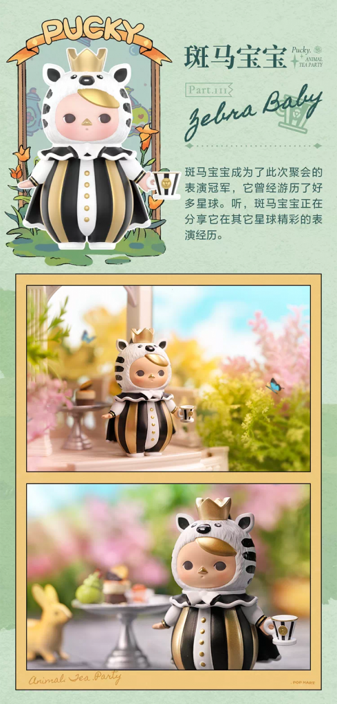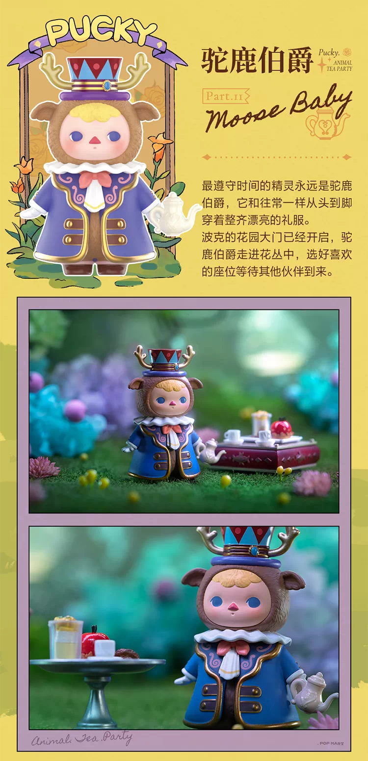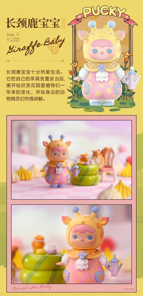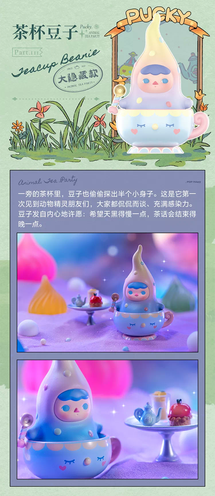 Down the rabbit hole we go as POP MART x PUCKY presents to you the Animal Tea Party blind box series! Put your fancy outfit on and get your tea and scones ready, as they invite you to one party where pinky finger are most welcomed. Prepare to be dressed to impress and one enchanting tea party like non other. Pucky is waiting for you and all set to show off all the outfits! TEA and CAKES are ready.