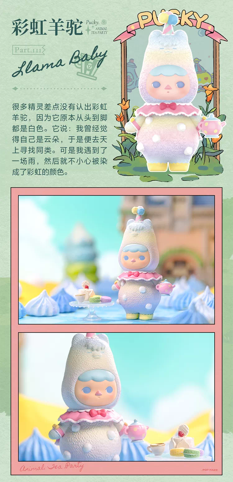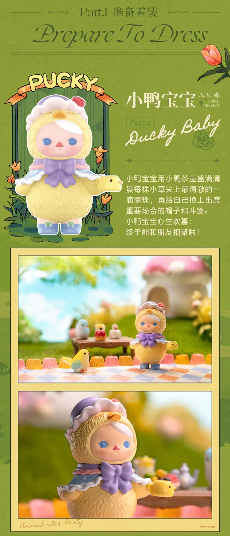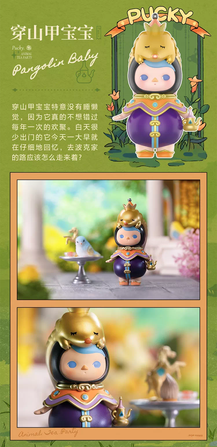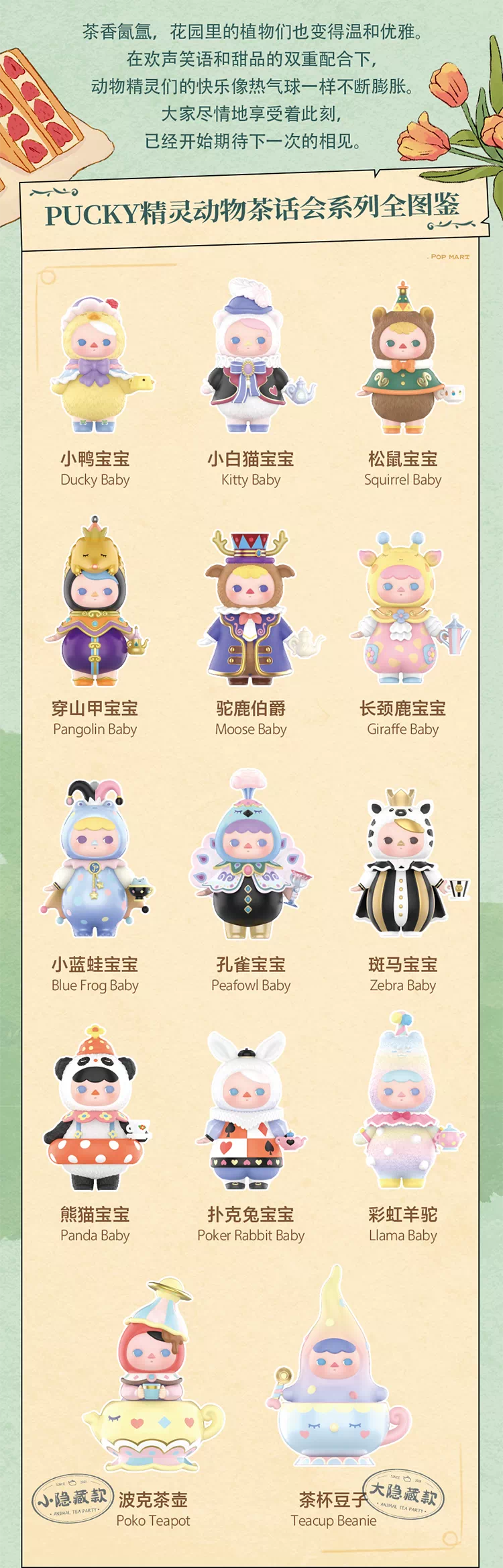 Down the rabbit hole we go as POP MART x PUCKY presents to you the Animal Tea Party blind box series! Put your fancy outfit on and get your tea and scones ready, as they invite you to one party where pinky finger are most welcomed. Prepare to be dressed to impress and one enchanting tea party like non other. Pucky is waiting for you and all set to show off all the outfits! TEA and CAKES are ready.