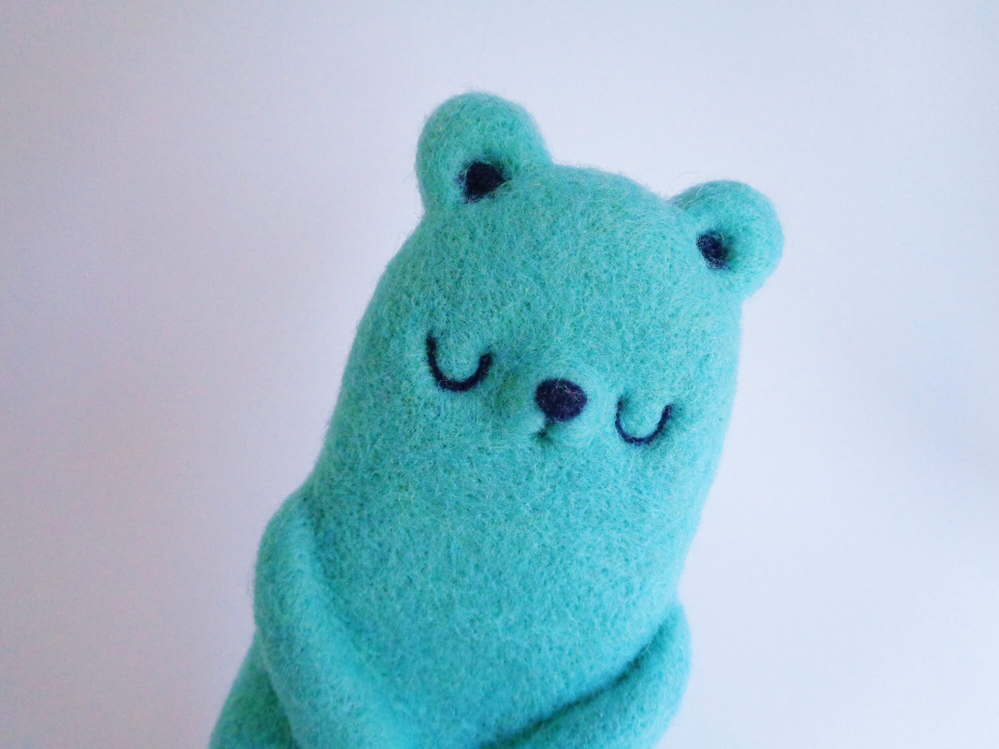 A handmade Art Toy measuring approximately 4.53″ tall, made in felt wool;