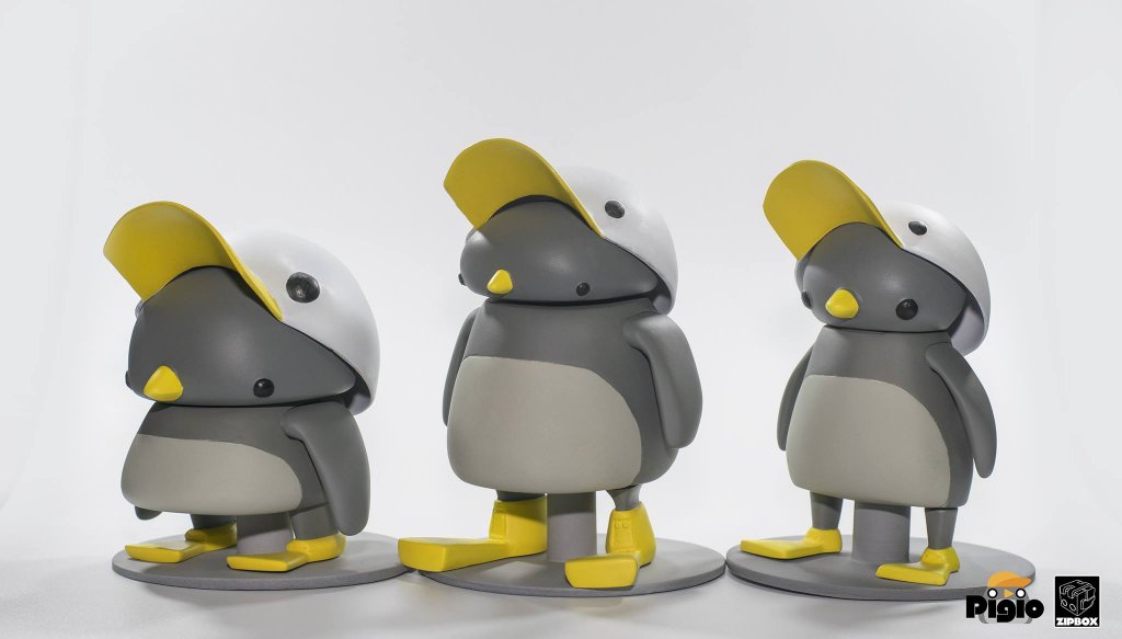 The west has PENGU and the East has Pigio! Ok so it might not actually be a penguin but its darn cute. Hybrid duck/pigion and penguin? lets not put a label on the little birds. WE loves these especially when they are all together like this. Nattaphong sirisopanon AKA Zipbox have done a smashing job from the ground up. With or without the duck caps giving the collectors a choice of looks will definitely win hearts over, Zipbox can be proud of these Pigio resin designer toys.