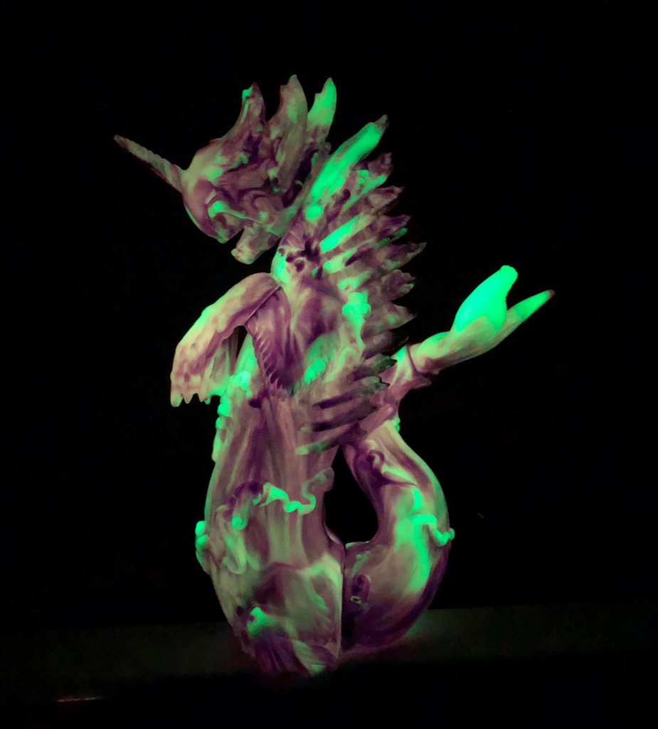 The infamous Bake-Kujira rises from the deepest and darkest oceans once again! The newest edition to the marbled GID Bake-Kujira series! This time in a gorgeous violet that blends into a nice pink colour when mixed with the GID vinyl. Candie quotes “This is probably my favorite marbled colorway so far!” Only 30 pieces produced.