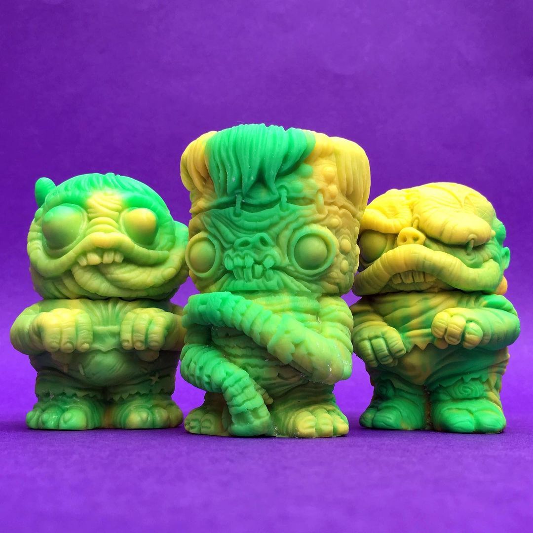 Hitting you all with a three-hit combo is John Santagada of Radioactive Uppercut! Already setting the standards for Keshi, the Coffin Licker, Frankencorpse and Spider Brains all get the Lemon/Lime marbled keshi editions! No doubt these three have all the details embedded within the Keshi and in true Radioactive Uppercut fashion with some bright colours that could give you a Keshi addiction.