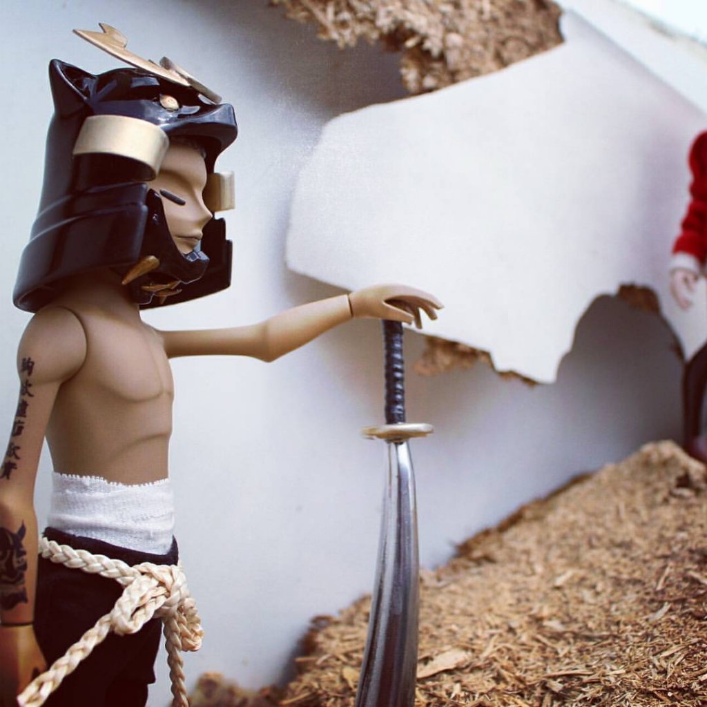 Art Toy Culture 2017 was done and dusted for the year, one artist goes by the name of Kang Myungjin aka ??? YAMA who we’ve been keeping a close eye on. Showcased his two all new resin figures Red Riding Hood and Wolf. The set of figures has that edgy urban look to them which we adore, well the oversize helmet and sword was the tipping point, HA.