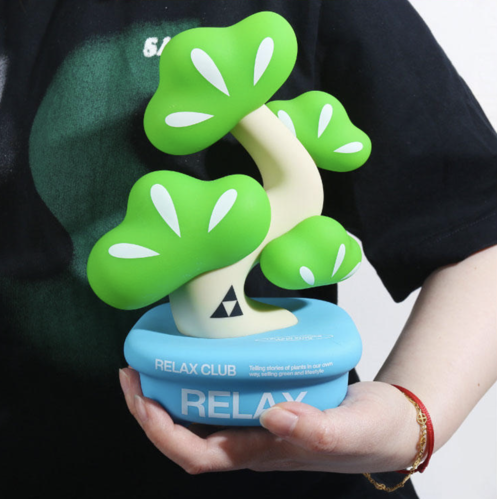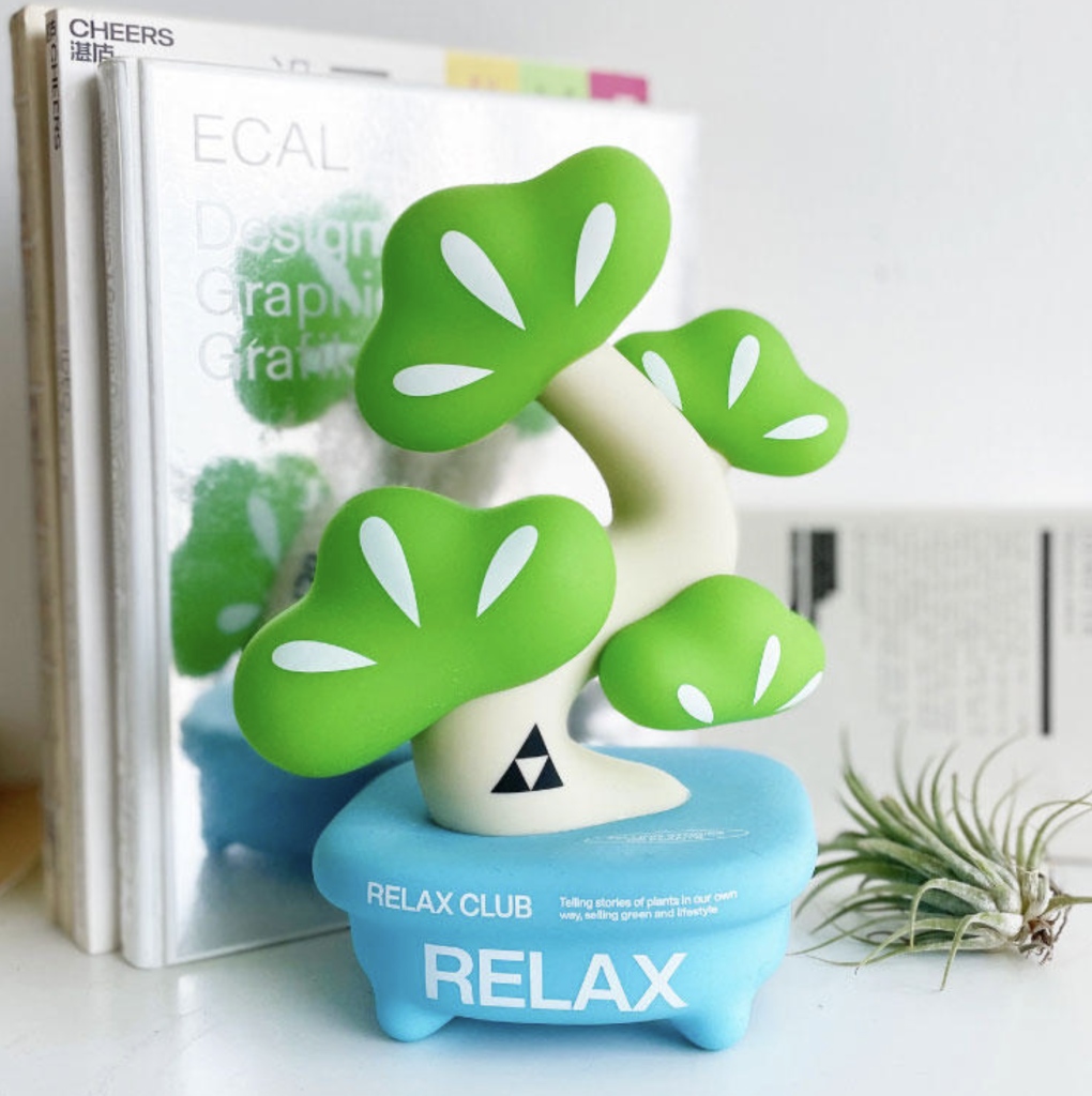 Pine trees and Bonzai have existed in this world for thousands of years. After the precipitation of time, it seems that it has long been familiar with the way of green pine. With a sense of awe, we want to tell stories about pine in a form that is more acceptable to young people. This is also the source of inspiration for this art collectible of a Bonzai tree-style figure