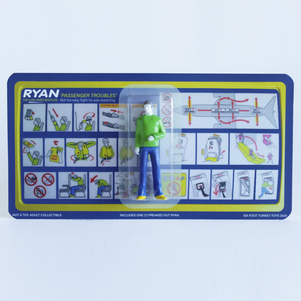 Need a good laugh to start the new year? Six Foot Turkey Toys might have the answer as they present RYAN bootleg! Stuck in lockdown and reminiscing some dreadful no-frills flights? Welcome to Six Foot Turkey Toys airways. it’s a 3.75 bootleg figure that represents the boy who appears in the safety flight instructions of a well-known low-cost flight company at the European level.