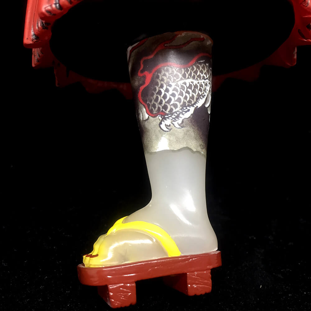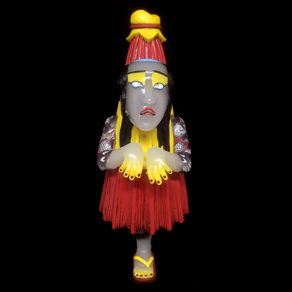 World famous Japanese “Three Tides Tattoo” Tattoo artist Horihiro is back to Toy Art Gallery. One more version of the classic tattooed mythical Japanese folklore ghost Karakasa is on the way. This time around in a Red/Yellow Milky version;