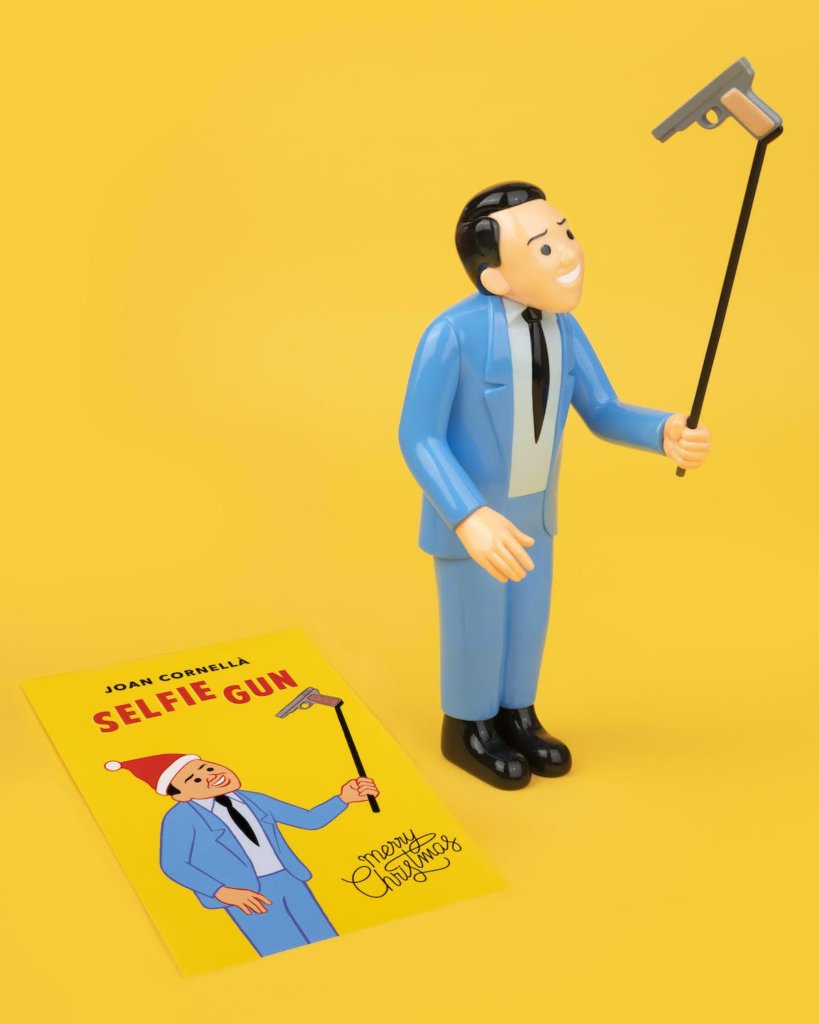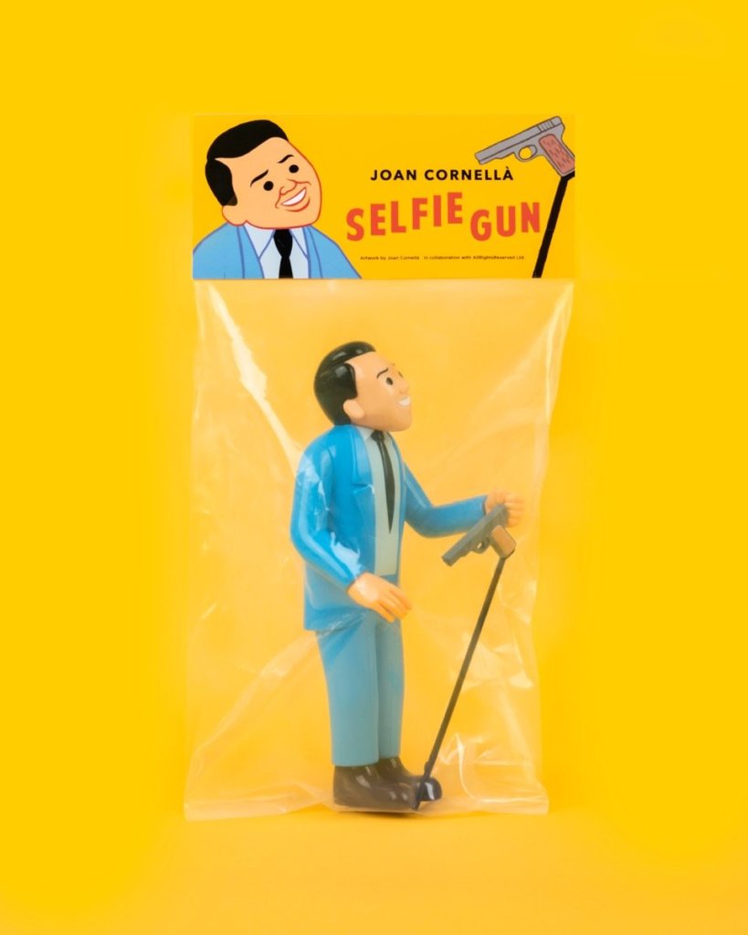 A couple of months back we all went into pandemonium mode as AllRightsReserved teamed up with Joan Cornellà to present to you all the bronze art figure of his Selfie Gun art. With a 12.5inches tall super limited painted bronze edition, most collectors just had to admire the photos. BUT today great news coming in from Joan as a much more affordable vinyl edition will be released via Ding Dong Takuhaibin. Like we said before, If you have ever encountered the work of Joan Cornellà previously, you will have found his dark humour, maybe a little unsettling or offensive (depending on your tastes) and surreal. Oh so very surreal.