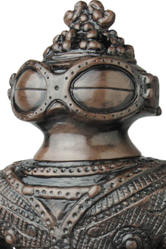 The best selling character of MARMITT returns in a new colorway to Medicom Toy! Inspired by the idol retrieved from the Kamegaoka Ruins in 1887. Named after the shape of its eyes looking like a snow glasses that was used by the ancient northern ethnic groups. Because of its unique shape, there is a theory that it is imitating an alien which is wearing a space suit. Here it is, the Shakoki Dogu!
