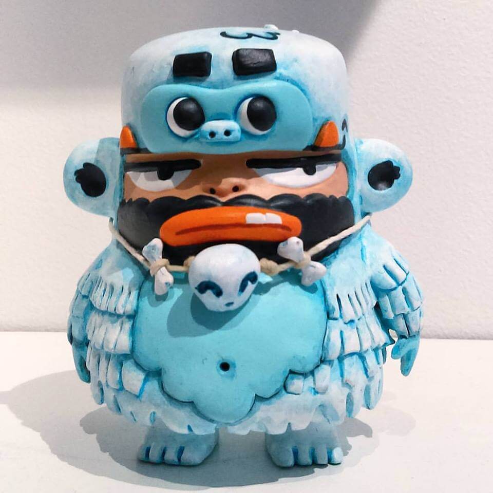 Being fans of one of our favorite Jakarta-based artist, Kong Andri we were delighted to see work from him as he prepared to take part in the TODAYS YETIMAGEDDON show at Mothership Gallery. Meet Si Batu The Yeti Hunter! Is this Kong’s CAVEMAN dressed up as a Yeti? Ha poor Yeti, must have been killed to in order to fashion! Eat that SUPREME x Louis Vuitton Hypebeasts.