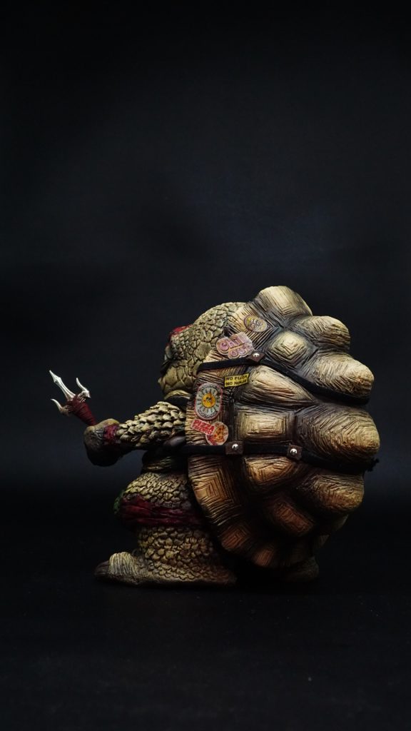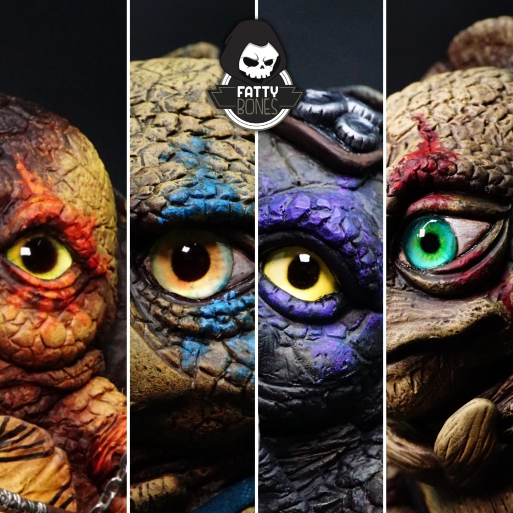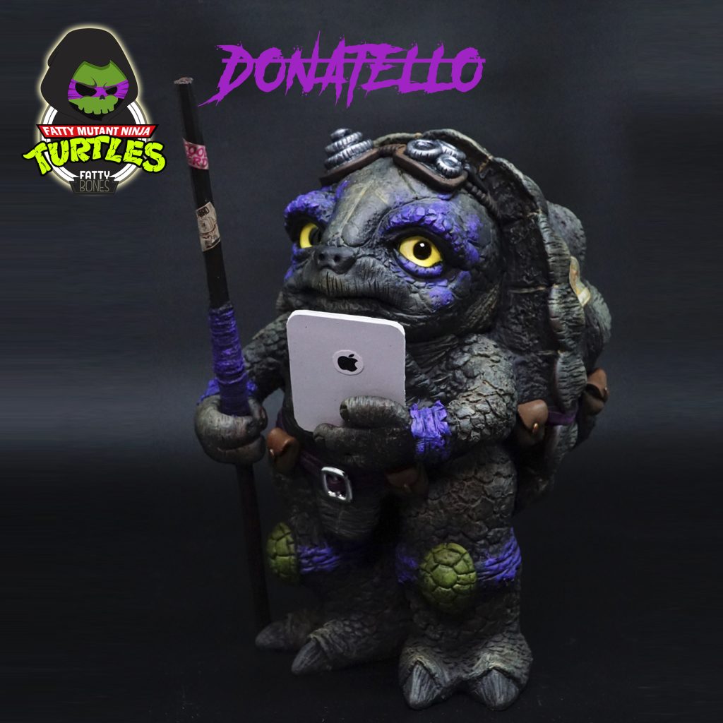 Need a prime example of what happens if you feed Turtles too much pineapple on a pizza, Indonesia-based artist Silvia Tampi keeps on teasing us about how much weight we have put on since Rona took over the world, HA joking. This weekend sees The Jakarta Toys And Comics Fair open its doors and it wouldn’t be right without Silvia Tampi and her platform Fatty Bones, right? Silvia Tampi Transforms  Fatty Bones into TMNT! the idea of this FMNT is that they come from different species of tortoise, more realistic one.  Michael from Radiata Tortoise, Leonardo from Leopard Tortoise, Donatello from Aldabra Giant Tortoise, and Raphael from Sulcata Tortoise. But their personalities are still based on the original TMNT story: Leo as the leader, Donatello as the cool Nerd /geek, Michael as the youngest  (cutest), and Raphael as the strongest one. Judging from the photos Fatty Mutant Ninja Turtles quite possibly be one of the best releases from Silvia Tampi with that paint and texture giving her own spin on TMNT. All we have to say is Cowabunga!