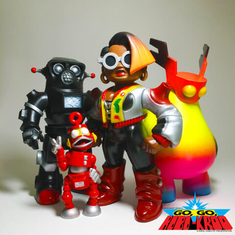 “GO, GO, Robo-Kroo” are a range of original, fully sculpted, hand-painted resin designs by illustrator Kneel, Robots.