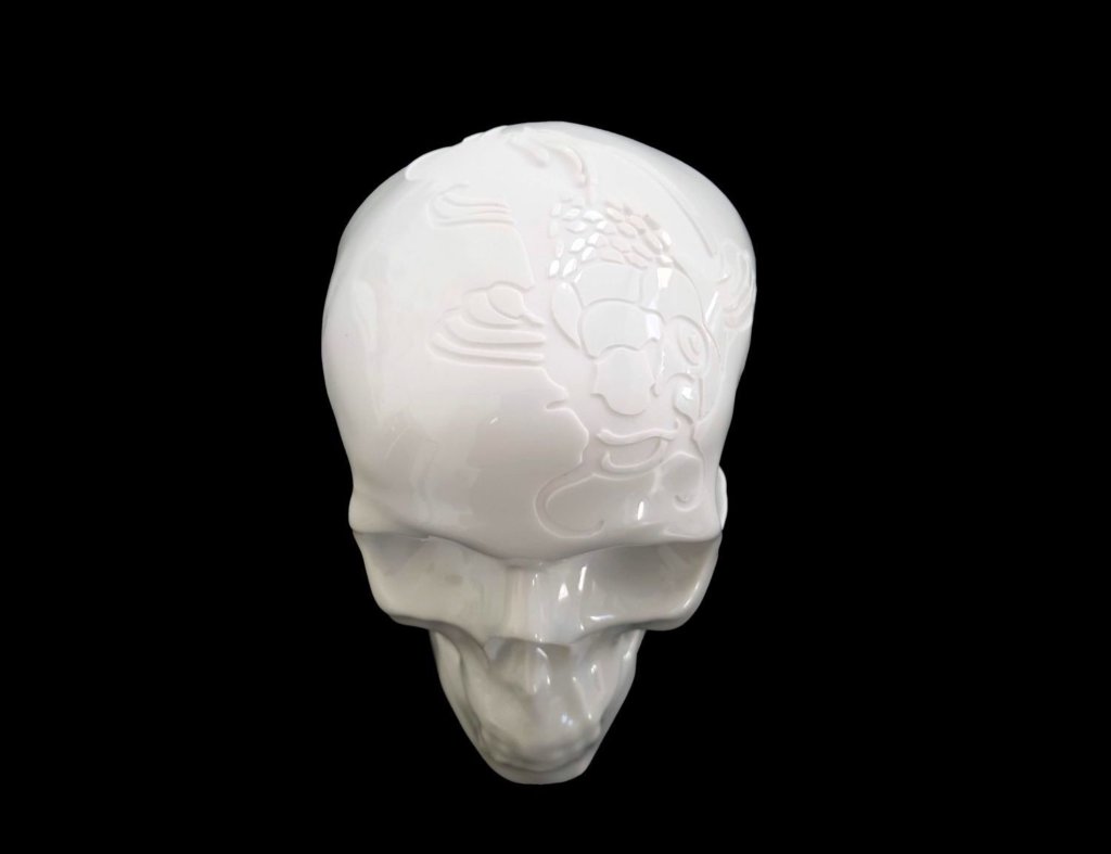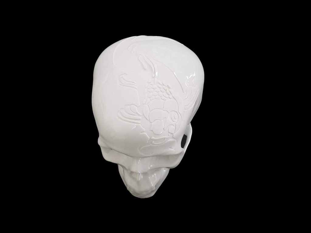 This is the first Koi skull in the engraving from the skull series. Each piece will be handmade by the artist. This series will consist of 25 pieces, numbered, sold with a certificate of authenticity signed by the artist and delivered in a wooden box. This sculpture will be in pre-sale from August 29, 2018, at 4 pm french time on our shop www.artandtoys.com more information :