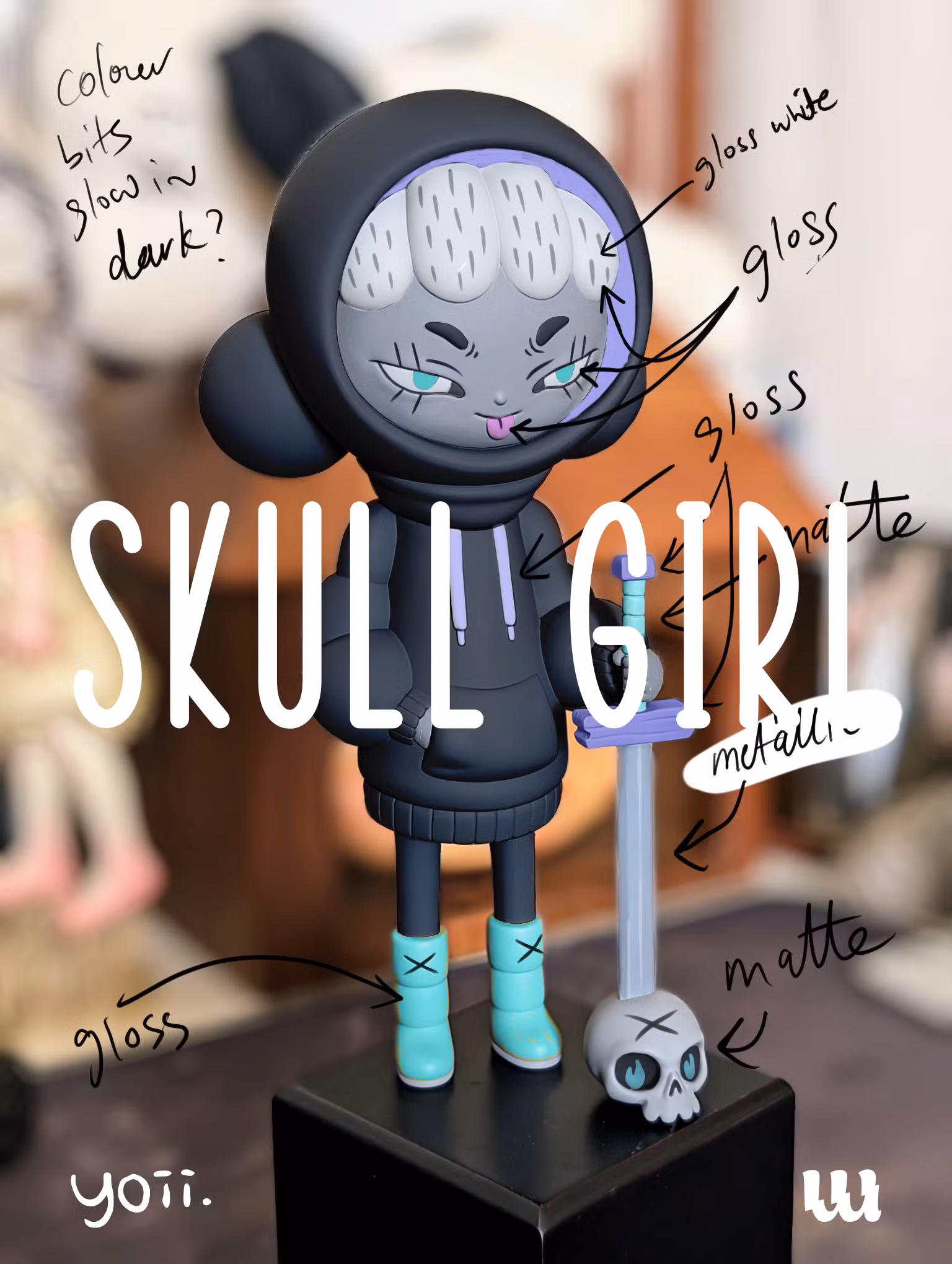Over 9 years ago we got addicted to Yoii’s art when Yoii worked on Wetworks “Norton Series” custom for POPCON Asia! Being a fan of Yoii paintings and illustrations we finally get to see Yoii’s characters come to life in an art toy sculpture thanks to Wetworks with Kidzilla and many others over the years. Fast forward to the present day, Yoii x Wetworks are back with SKULL GIRL which has all the hallmarks of Yoii’s signature style that we have been treated to with her paintings and illustrations.