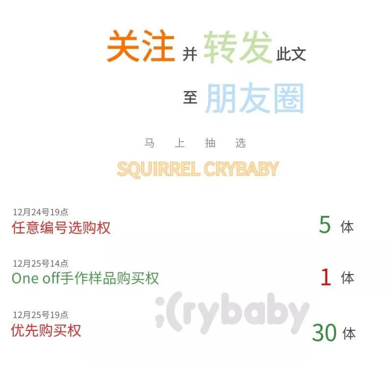 Our eyes are tearing up right now as Molly’s Factory x Finding Unicorn is set to release another exclusive! Winter is in full swing and Molly Yollm’s Crybaby has been gathering up all the harvest ready for the harsh weather! This weekend will see Squirrel Crybaby make her debut and ready for a new loving warm home.