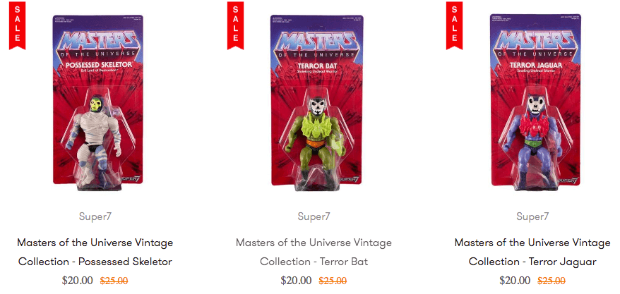 Hey Masters Of The Universe, just a quick heads up. Super7 is hosting right now a ‘MOTU Monday’ sale at their website. They are down to the final inventory of some limited run itens and so decided to have a sale. A great opportunity to own some great pieces at a great price. The sales include the remaining 12-inch Test Shot Figures and the 5 1/2-inch Three Terrors Figures.