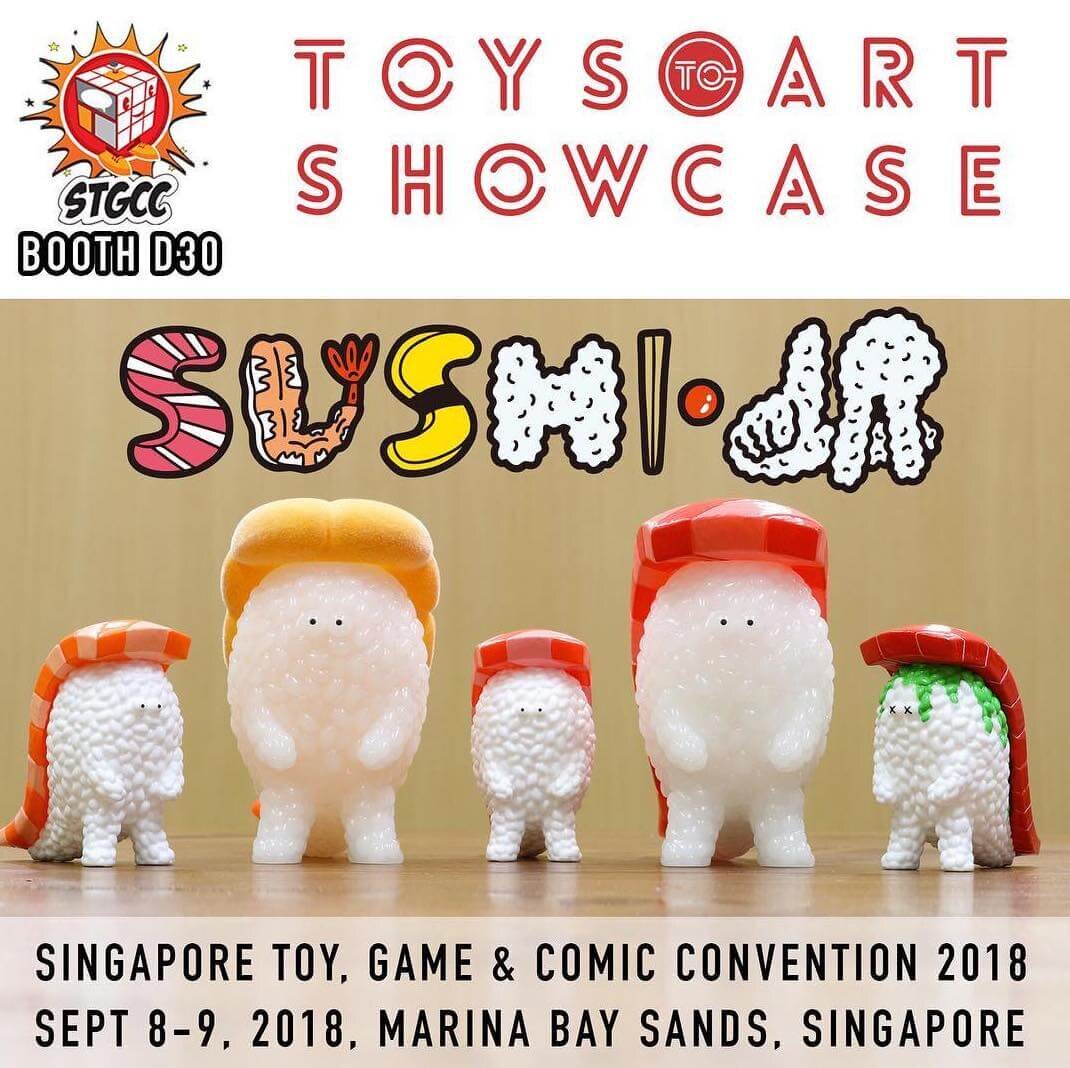 KEEPING IT FRESH is Sushi L.A series from Nakao Teppei x Sentinel! “Toys to Art Showcase booth will serving up a fresh selection from the Sushi L.A series – Fatty Tuna Sushi L.A. Maguro, Fried Shrimp Sushi L.A. Ebi. Hold up! PLUS the debut of the event exclusive DEEP FREEZE version of Maguro cast in crystal clear Japanese vinyl. For the DIY artist – grab a blank resin kit of Sushi L.A. Maguro and paint to suit your own taste!” How about that! One more reason to head to STGCC 2018 this weekend. SUSHI L.A Maguro and Ebi already released and pre-orders started! being a sushi chef (yes, that’s my real job) and the love of sofubi ‘n’ cute kaiju “SUSHI L.A Maguro and Ebi ” caught my attention instantly. Its true I cried a little when collectors at conventions got the first dibs. Today is a new day and Nakao Teppei & Sentinel announcing Fatty Tuna Maguro and Fried Shrimp Ebi sofubi figures these two will be on our radar for sure. Seeing the new sizes too will bring relief to our shelf space, HA.