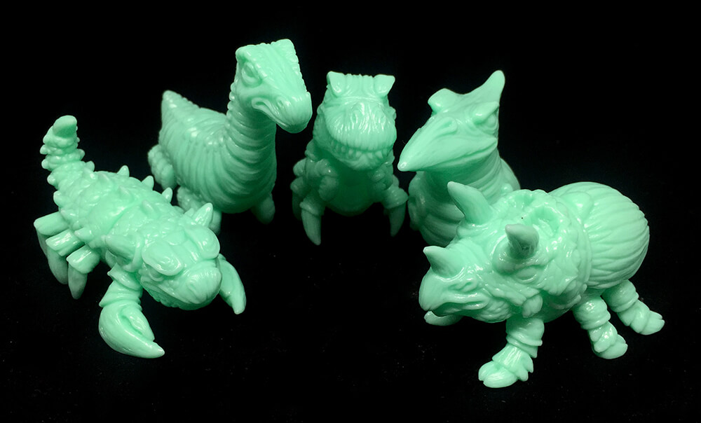 They are bugs, they are dinos and they are back. James Groman Fossil Pods return for a new coloway, this time around in a fresh green ‘Min Edition’. 2 inches of detailed soft vinyl in vibrant green. All our favourite characters are available; Tricerabeetle, Mosquitodactyl, Tyrannonmantis, Brontopillar, and Saurpian;