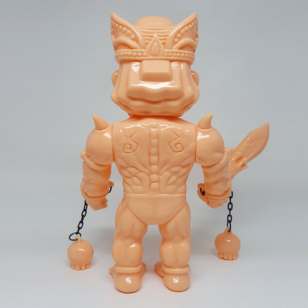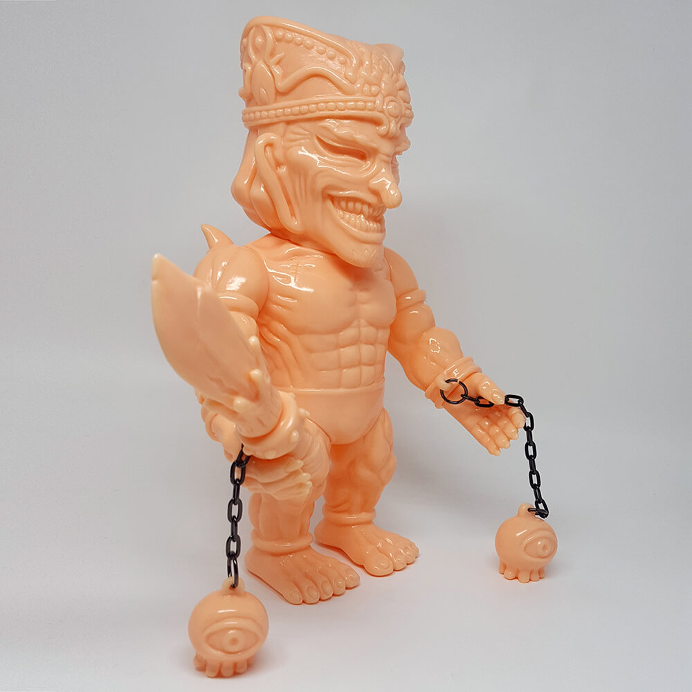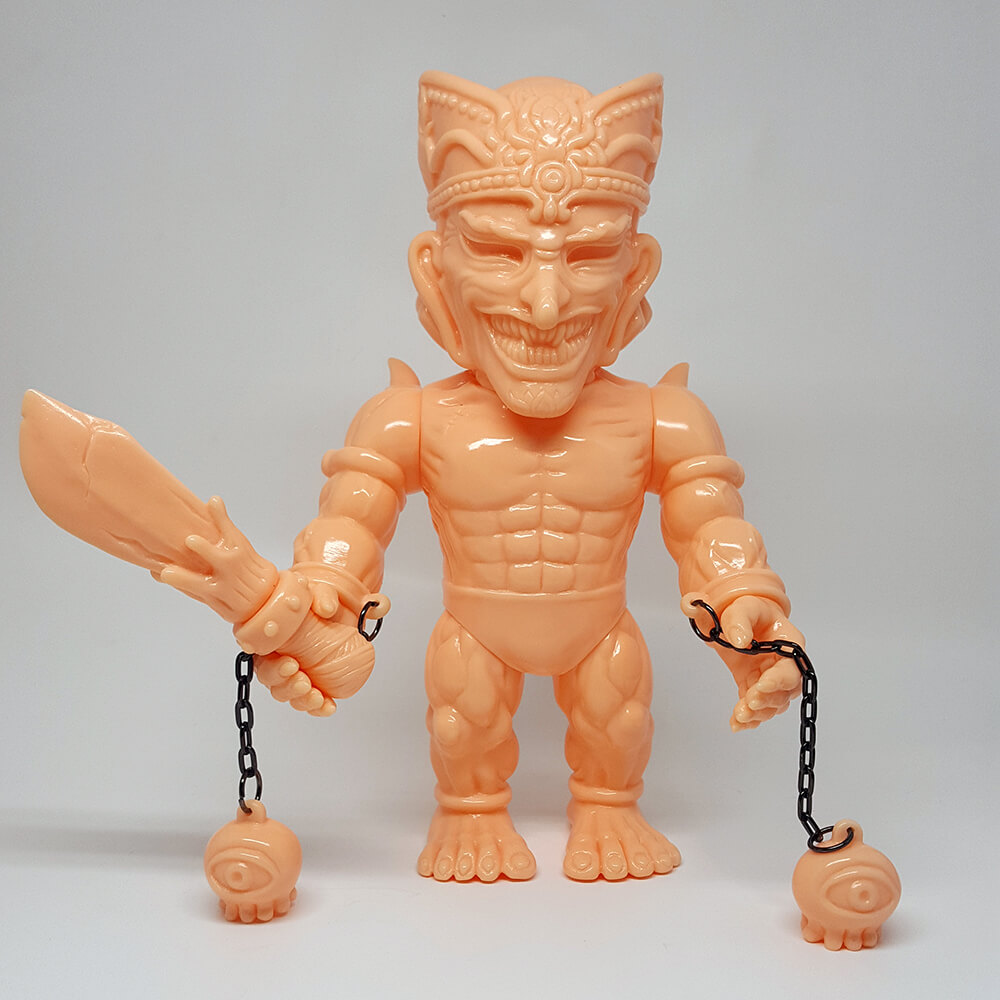 In this debut version appears in a ‘flesh’ soft vinyl cast with a removable sword and two little ghost buddies on chains;