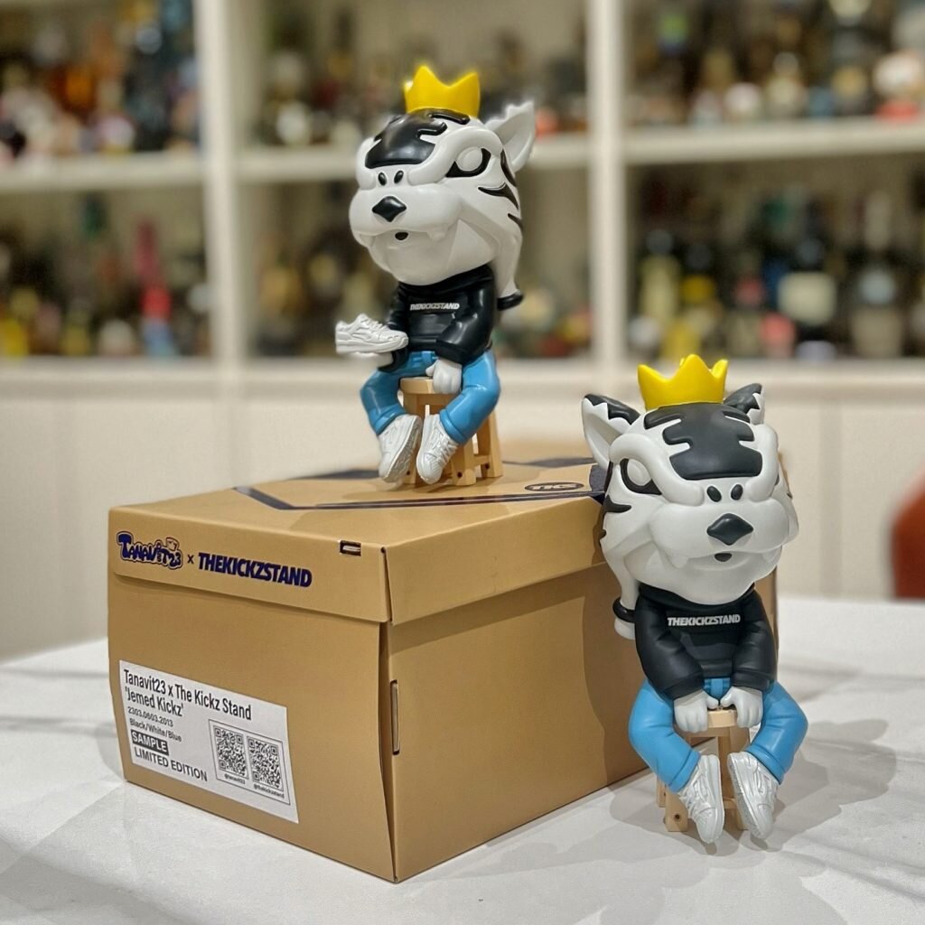 The Tanavit23 x The Kickz Stand ‘Jemed Kickz’ piece captures the spirit of both worlds — art toys and sneaker culture — merging character storytelling with street-style precision. The figure, styled with ASICS-inspired sneakers and the signature THEKICKZSTAND hoodie, sits with quiet confidence, wearing the crown not as a symbol of ego, but of passion earned.