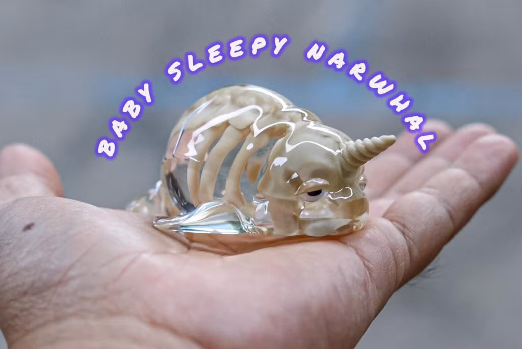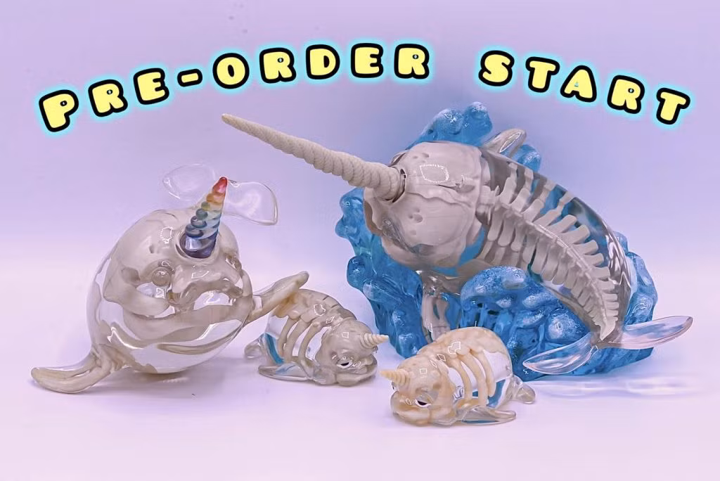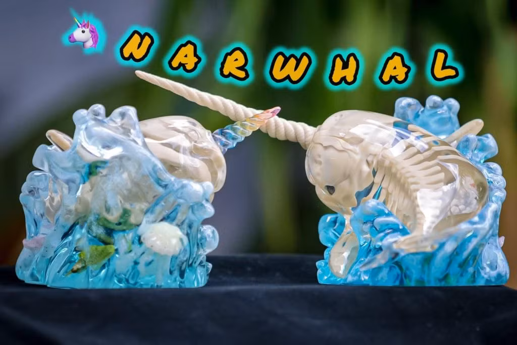 After months of teasing, TODAY is the day as Thailands TCS Arts Chawalit Siribundasak who brought you all the fantastic ” Shark Fat’tack” Daddy Shark and Baby Shark Shar-bly, plus that original Blue Whale Laboon and Long Tooth Walrus has given birth to a range of Narwhal’s! Making big waves once again with Narwhal and baby editions with that signature double casting showcasing the skeleton.